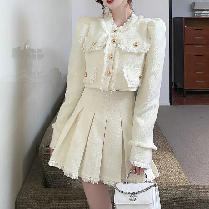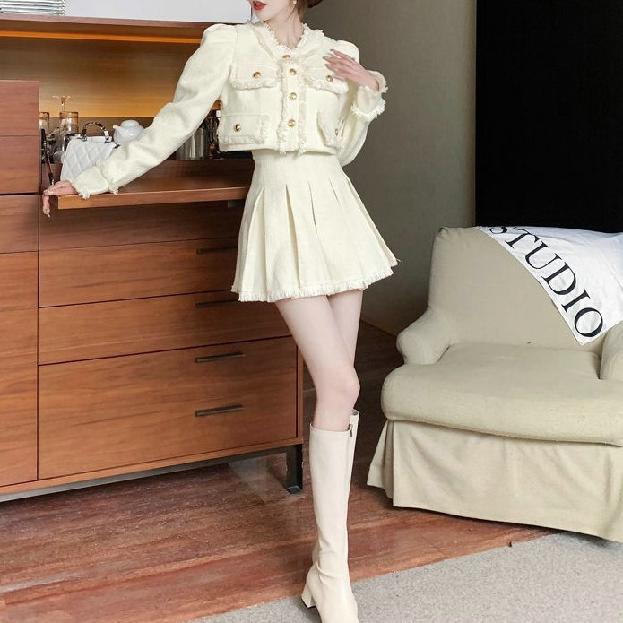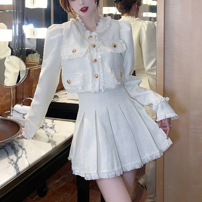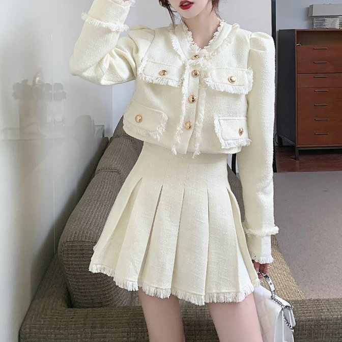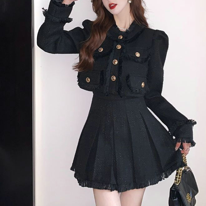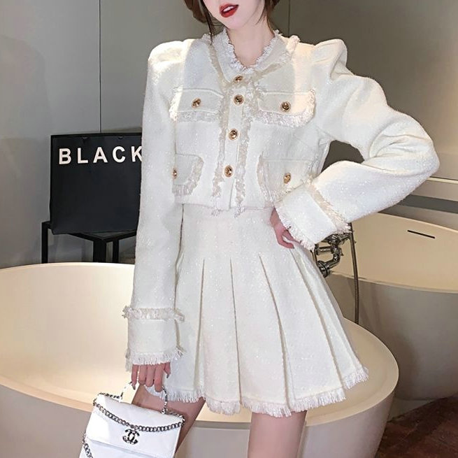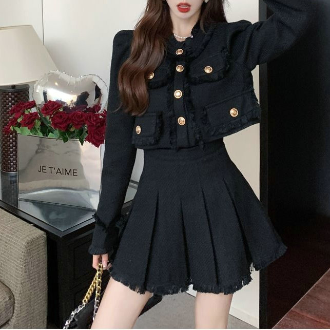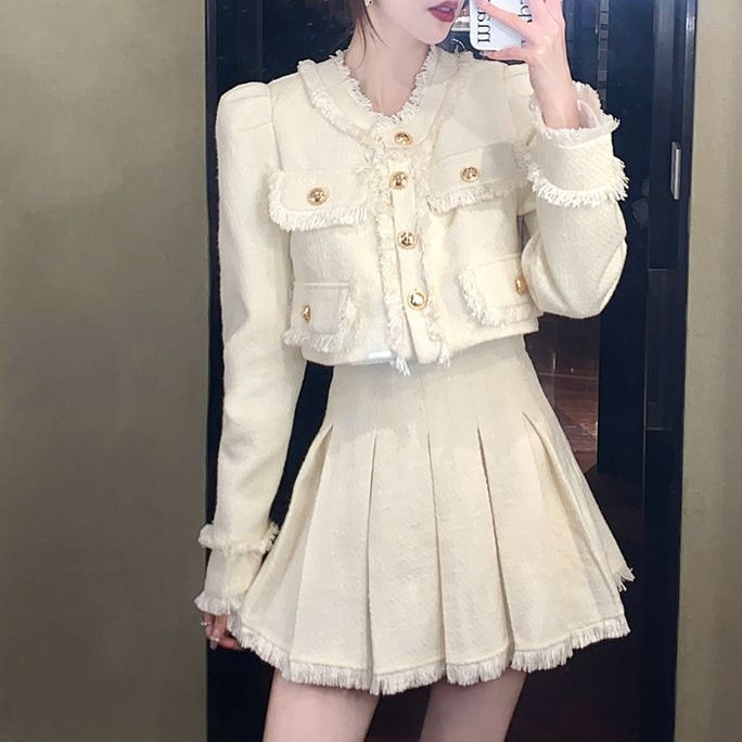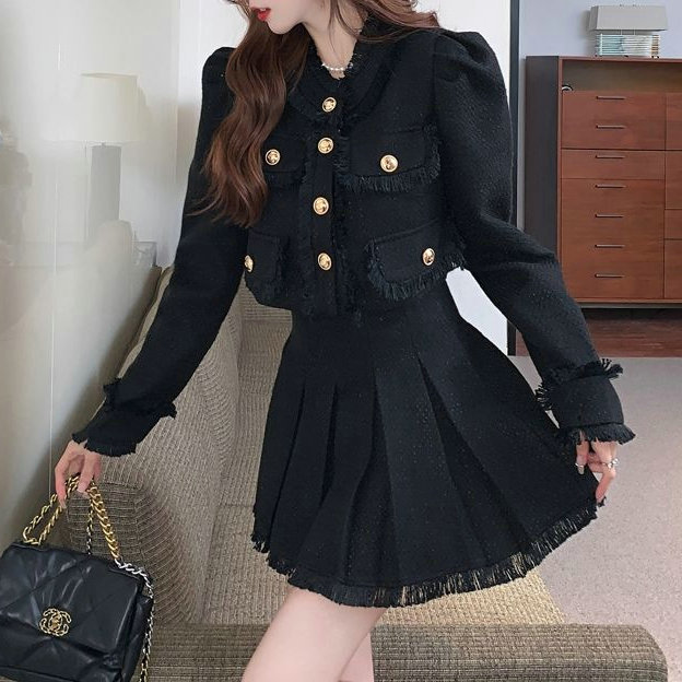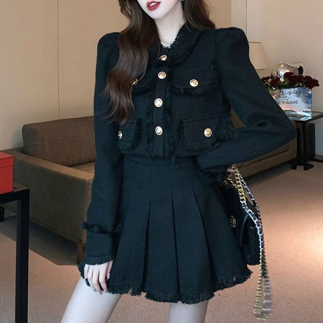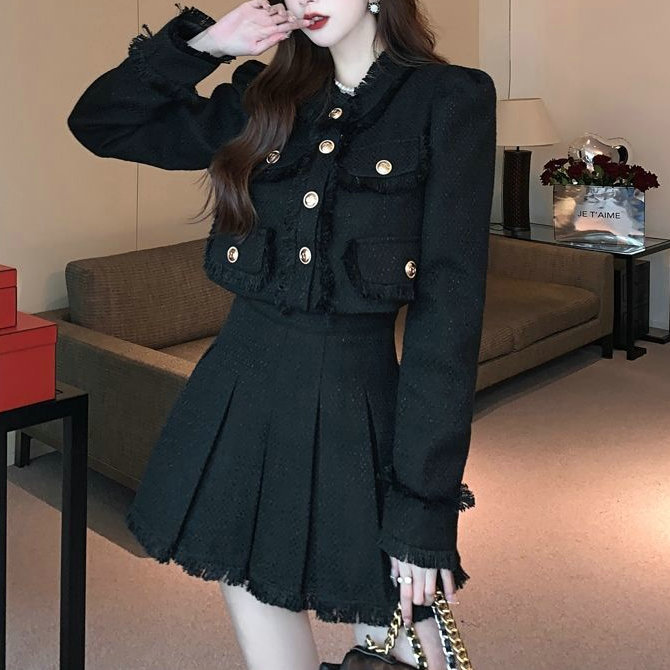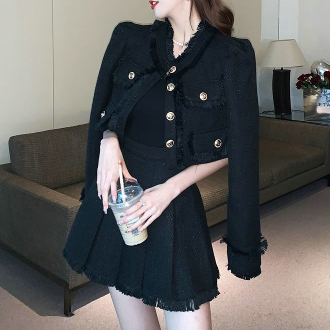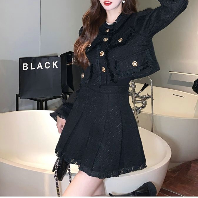 샤오샹풍 투피스 정장 스커트 세트 2025 가을 겨울 신상 프렌치 스타일 명사풍 숏 자켓+미니스커트스토어 가기