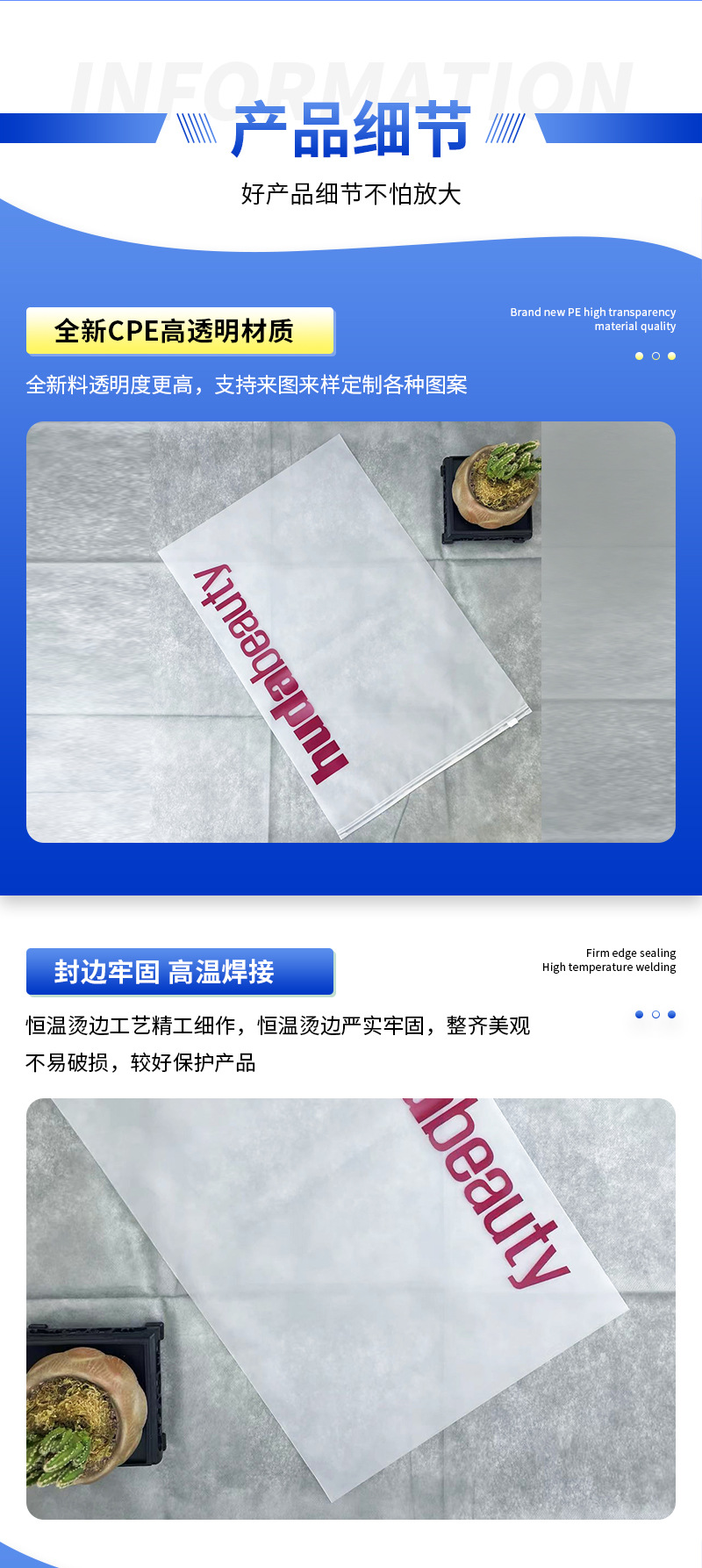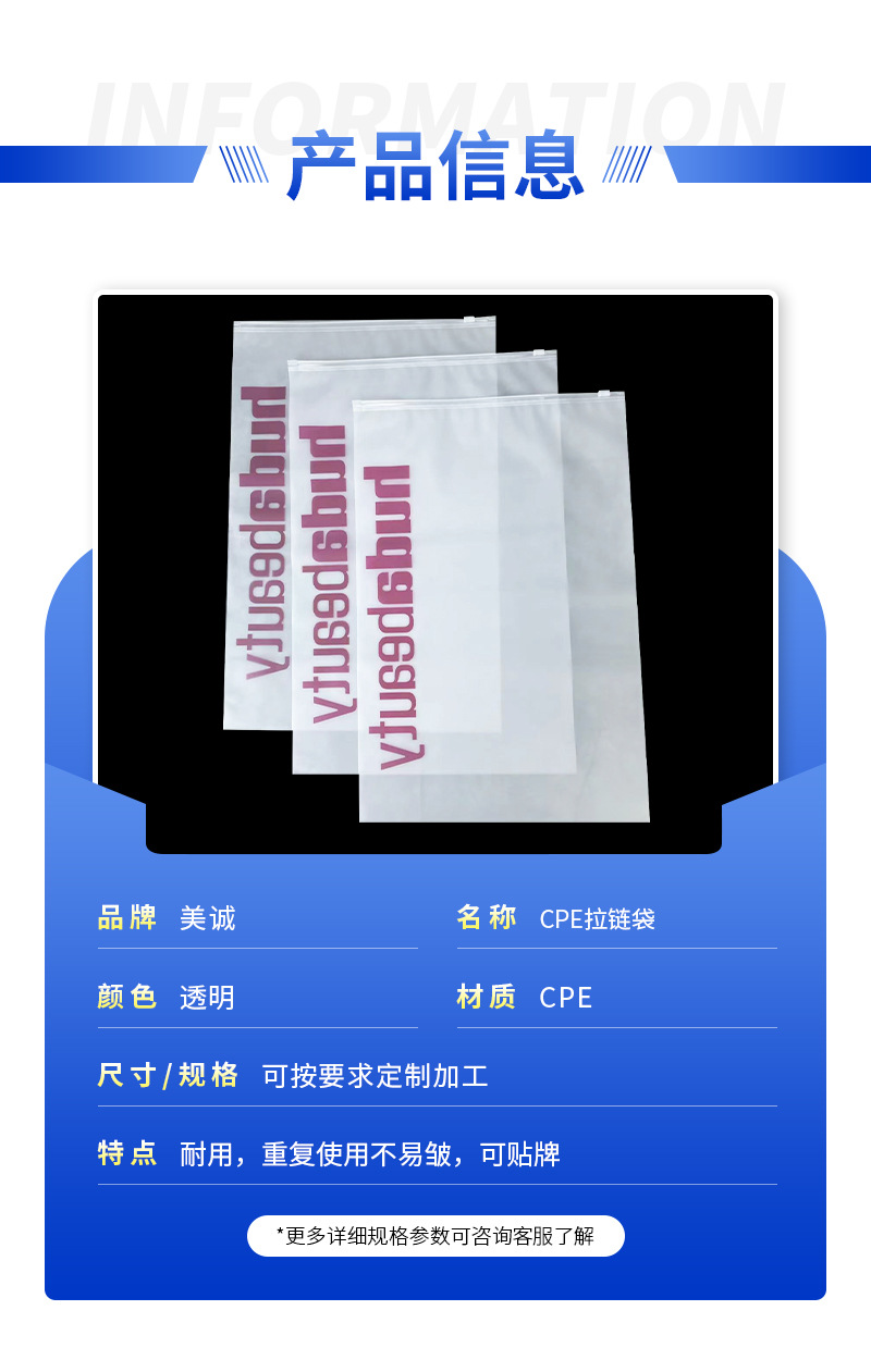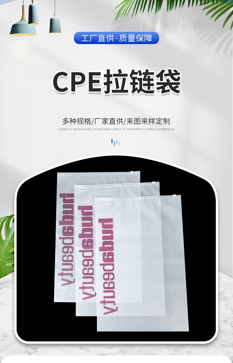 두꺼운 CPE 지퍼백 의류 포장 가방, 로고 인쇄 가능 플라스틱 포장 가방