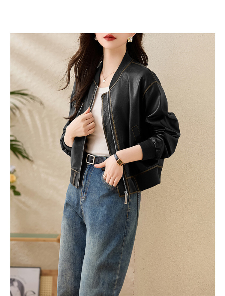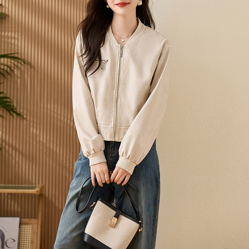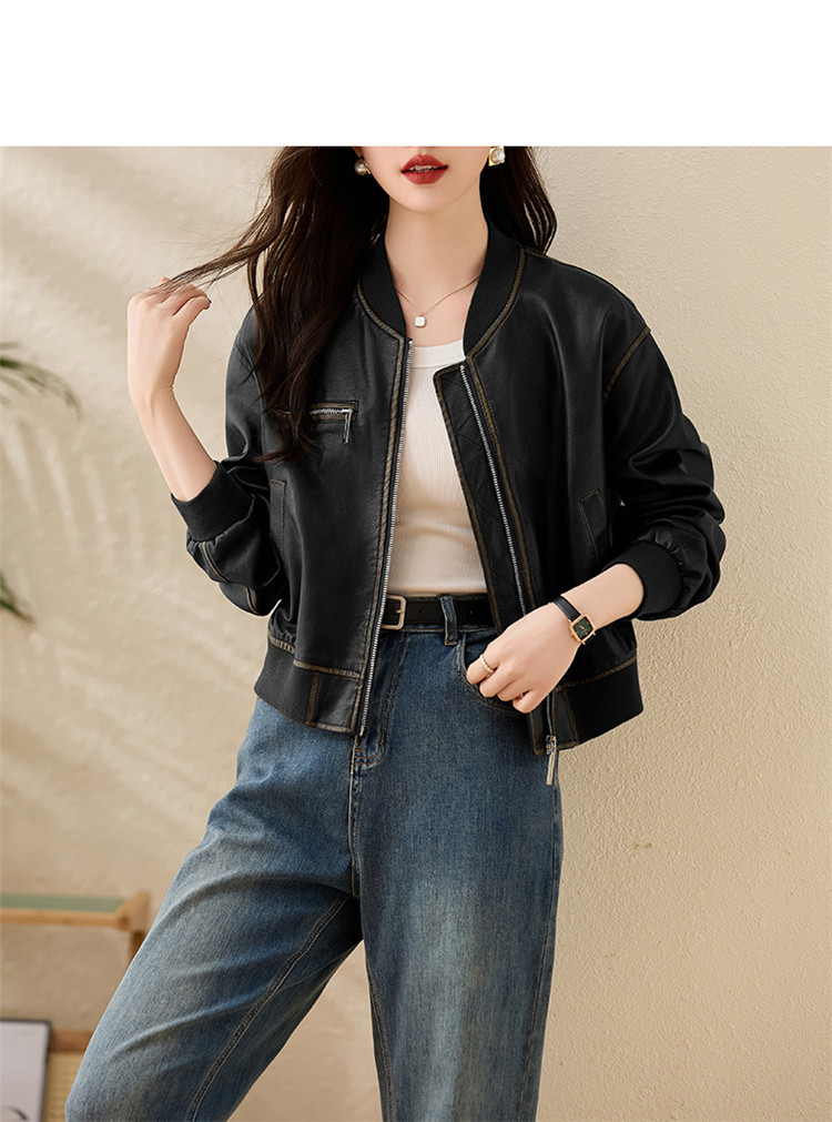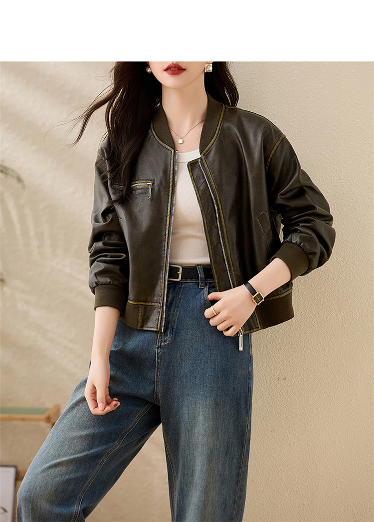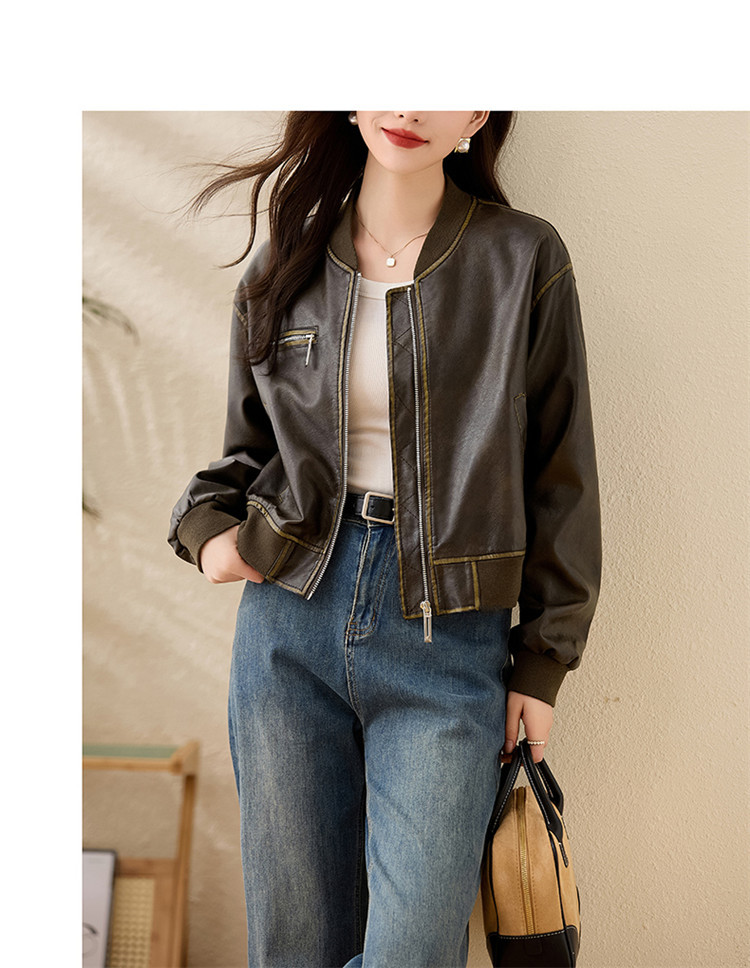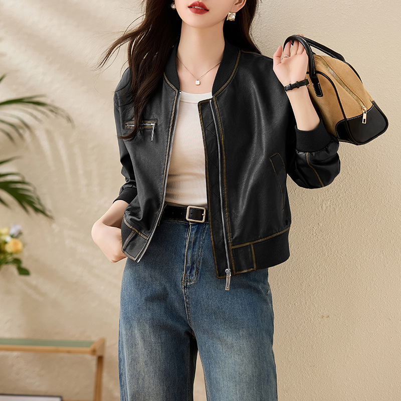 브랜드 캐주얼 정품 가죽 코트 여성의 짧은 봄과 가을 새로운 복고풍 유행 우아한 올 매치 여성 자켓스토어 가기