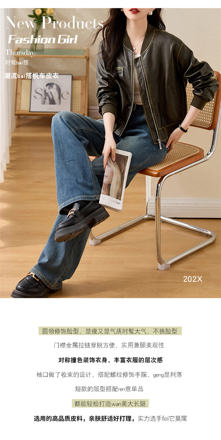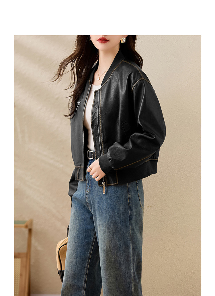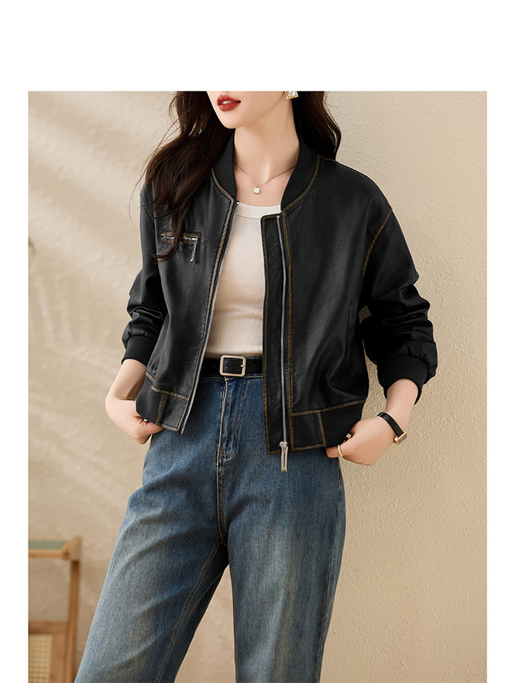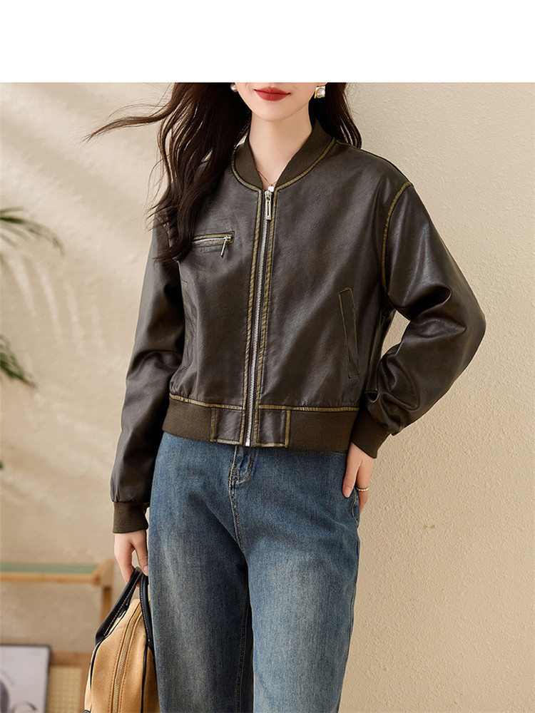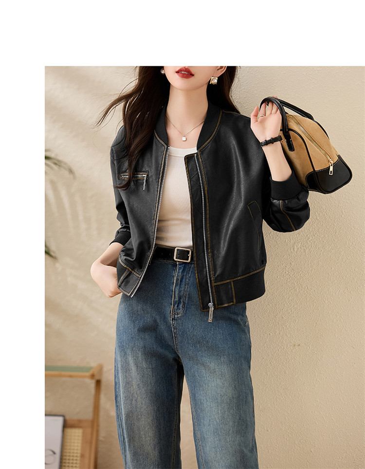 브랜드 캐주얼 정품 가죽 코트 여성의 짧은 봄과 가을 새로운 복고풍 유행 우아한 올 매치 여성 자켓스토어 가기