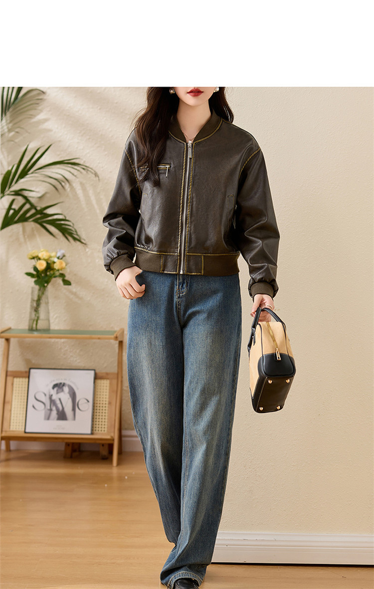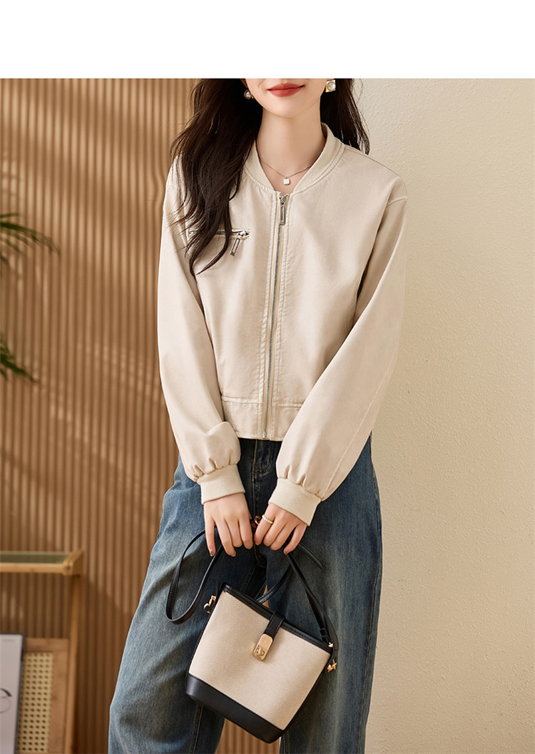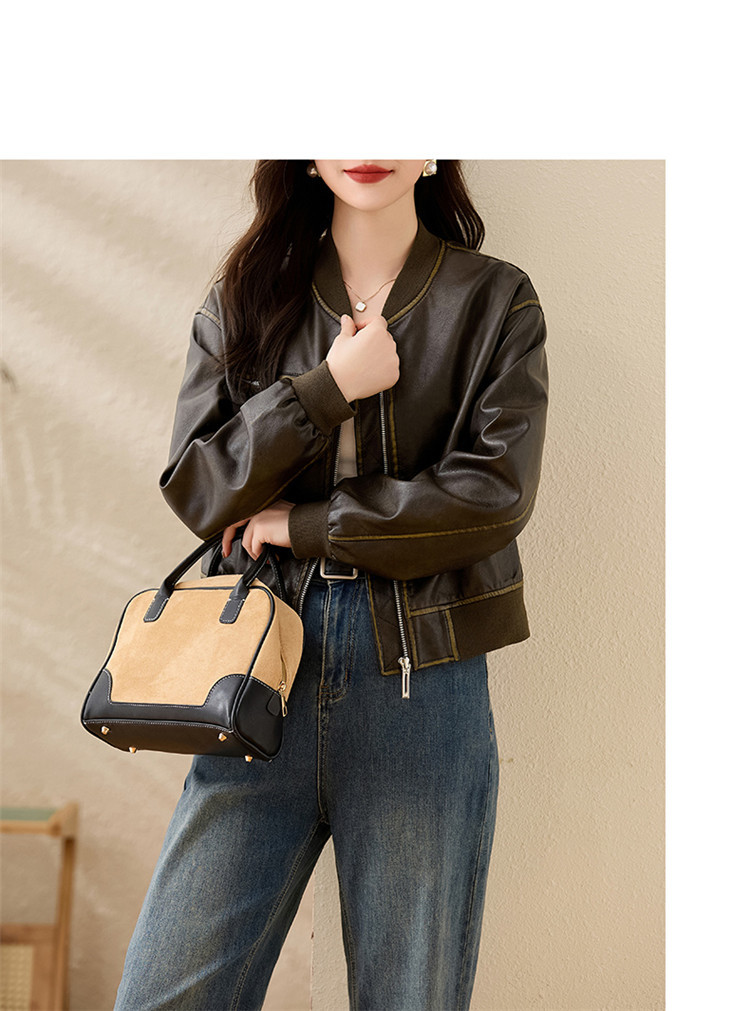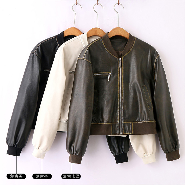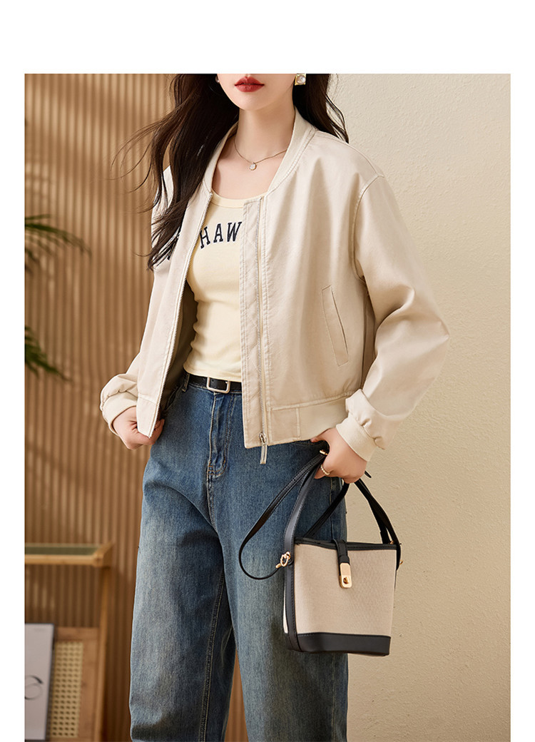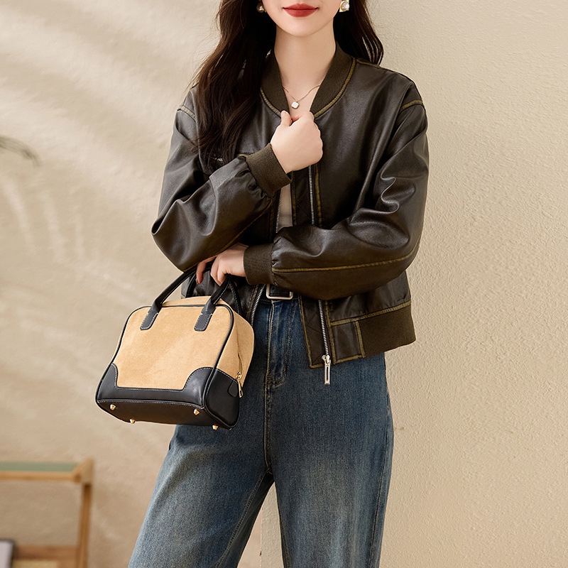 브랜드 캐주얼 정품 가죽 코트 여성의 짧은 봄과 가을 새로운 복고풍 유행 우아한 올 매치 여성 자켓스토어 가기