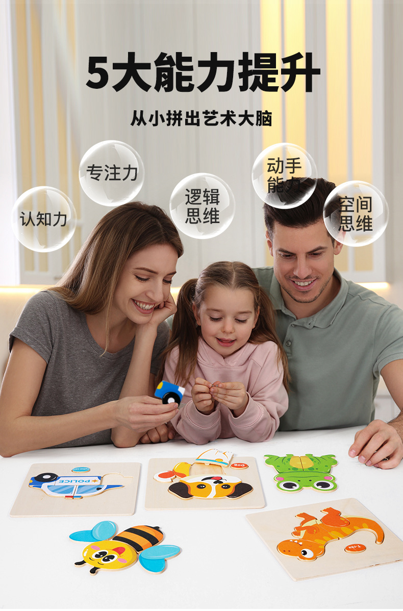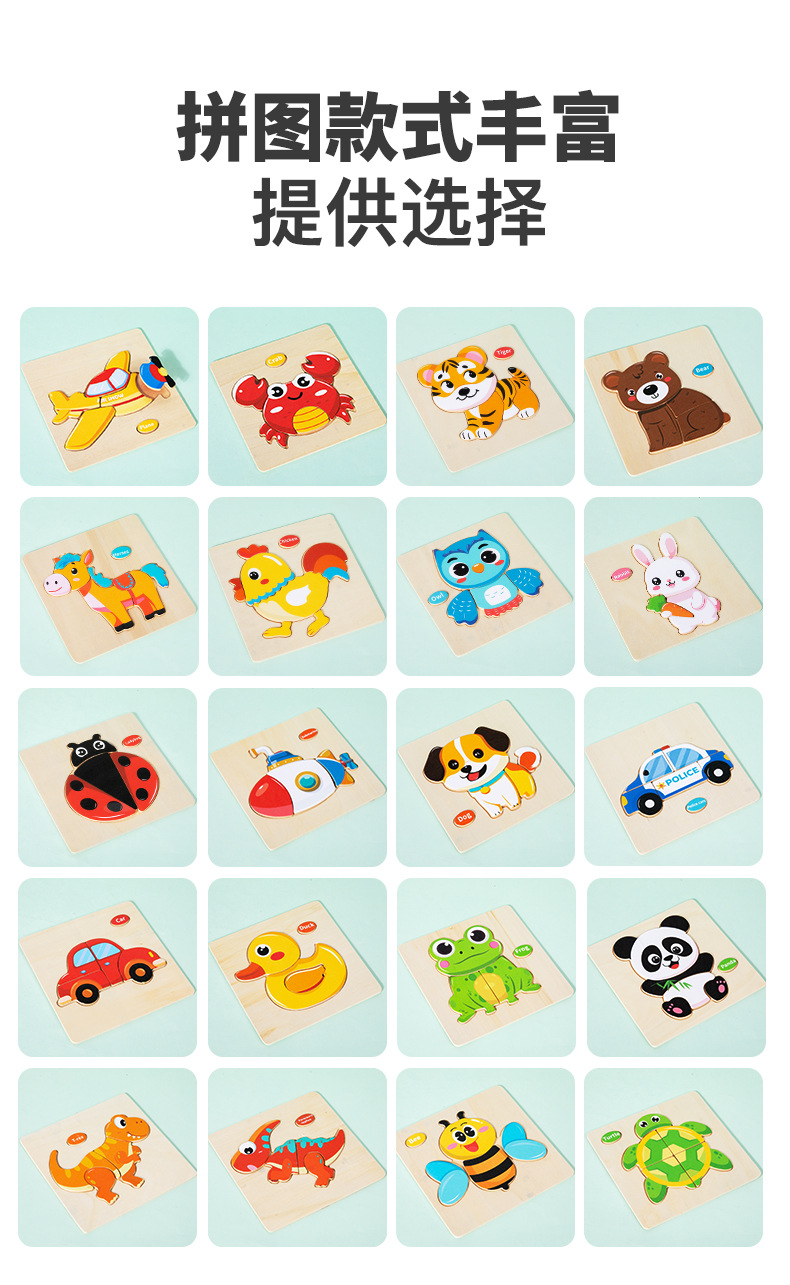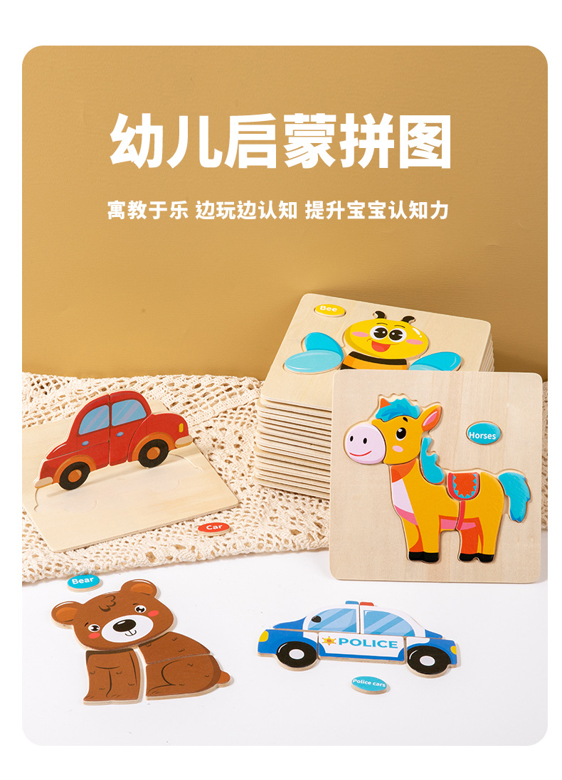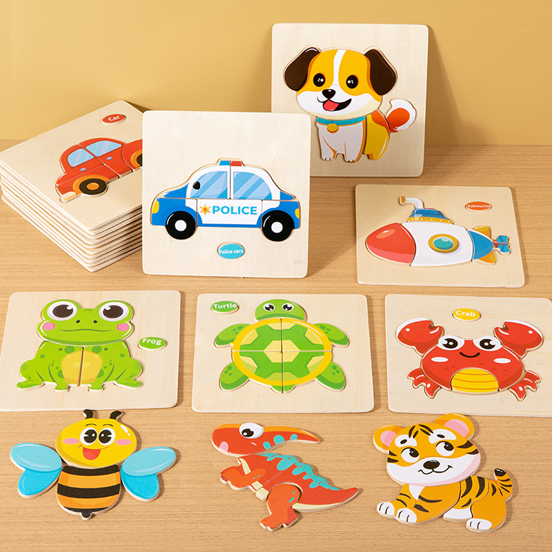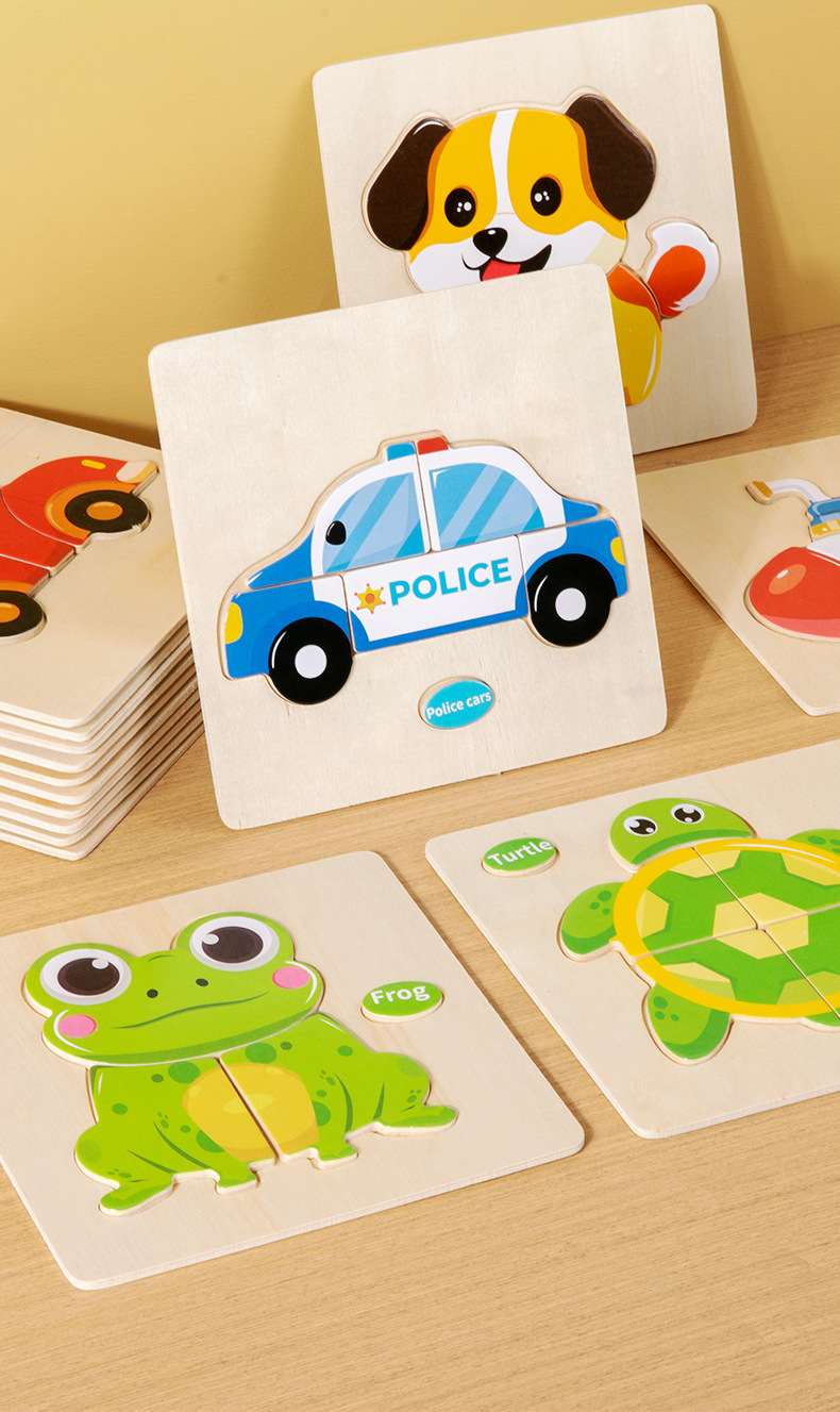 CPC CE 어린이 나무 장난감 아기 조기 교육 교육 3 차원 모양 동물 교통 일치하는 퍼즐 장난감