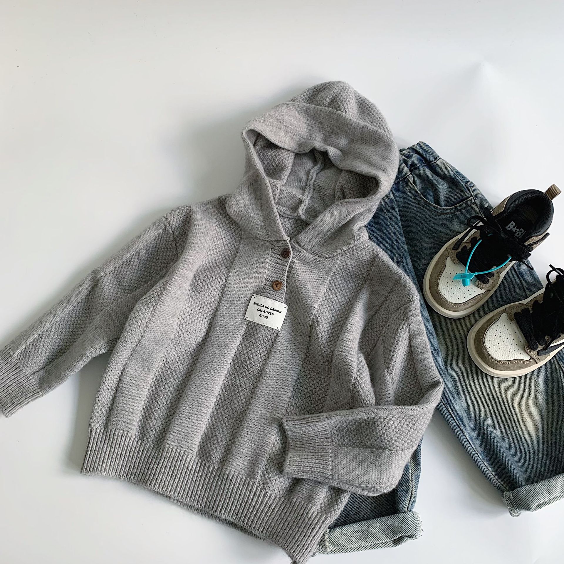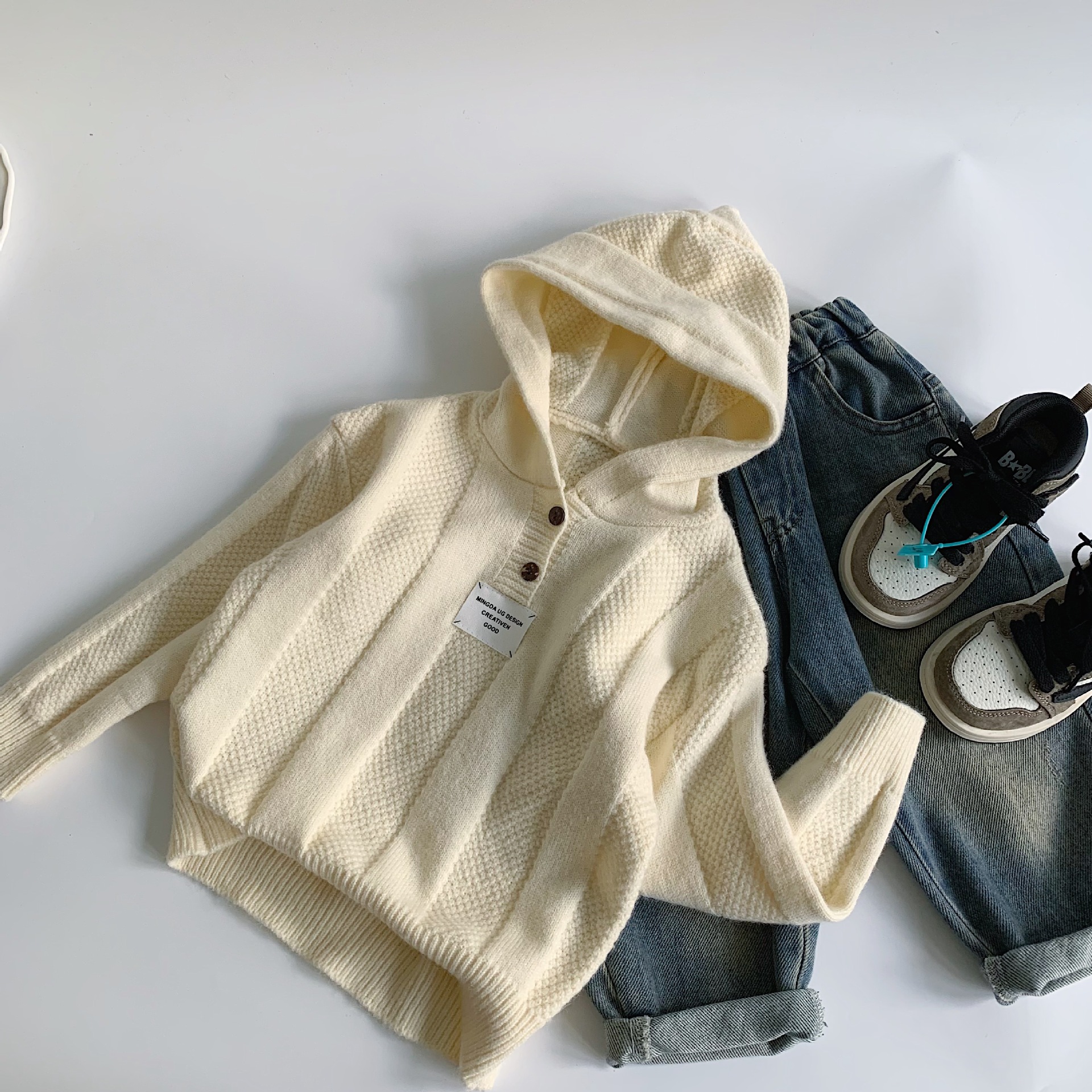 【재고정리, 반품/교환 불가, 25위안】아동용 스웨터 2026 겨울 신상품 남아/여아 후드 니트웨어 아동복스토어 가기