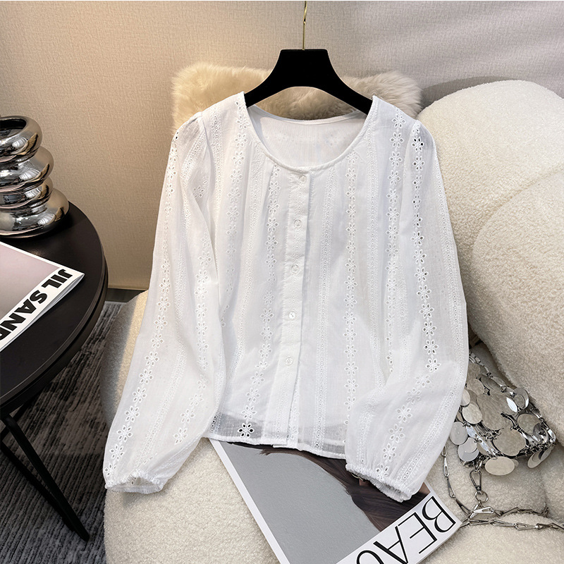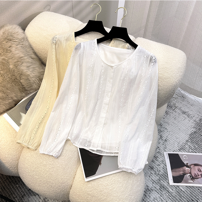 프랑스 자수 레이스 긴팔 셔츠 2024 가을 여성의 한국 스타일 나이 감소 외국 스타일 인형 셔츠 탑스토어 가기