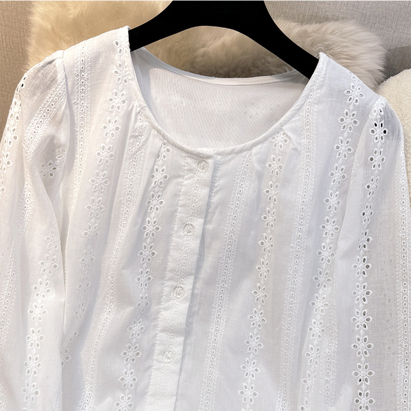 프랑스 자수 레이스 긴팔 셔츠 2024 가을 여성의 한국 스타일 나이 감소 외국 스타일 인형 셔츠 탑
