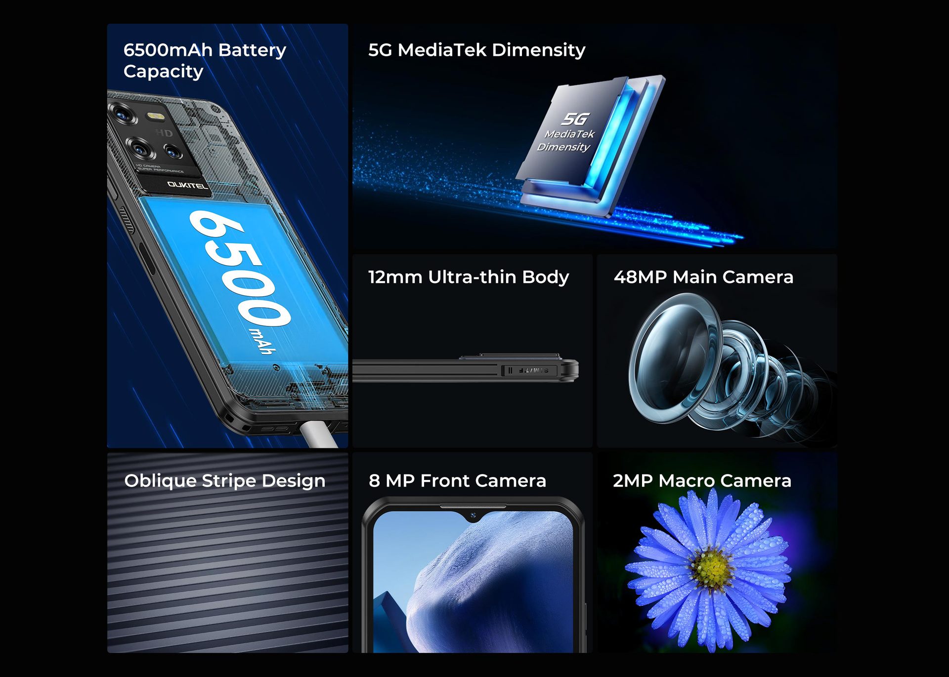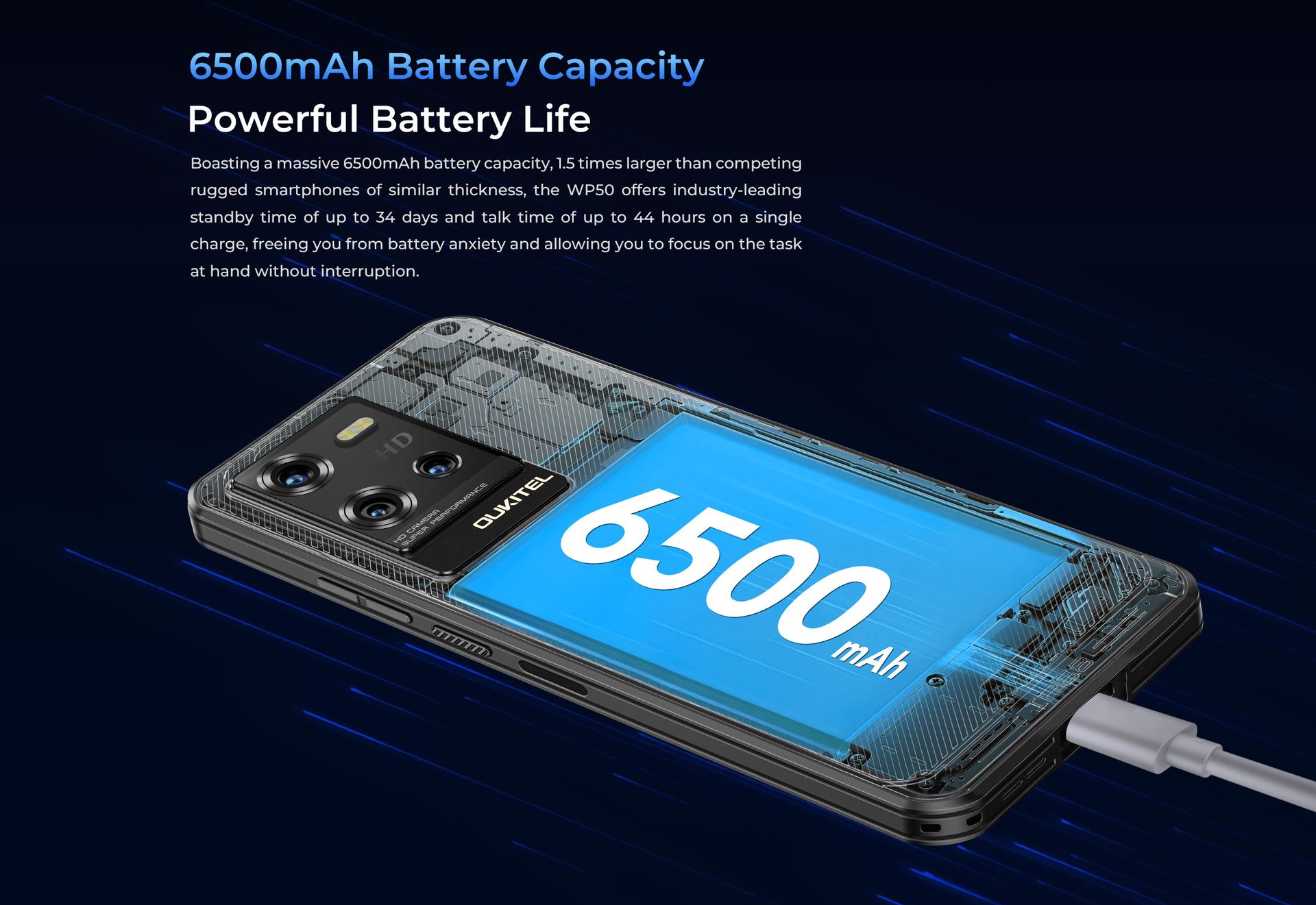 Ouqi WP50 6.6 "4 256G 6500mAh NFC 안드로이드 14 5G 3 방지 휴대 전화