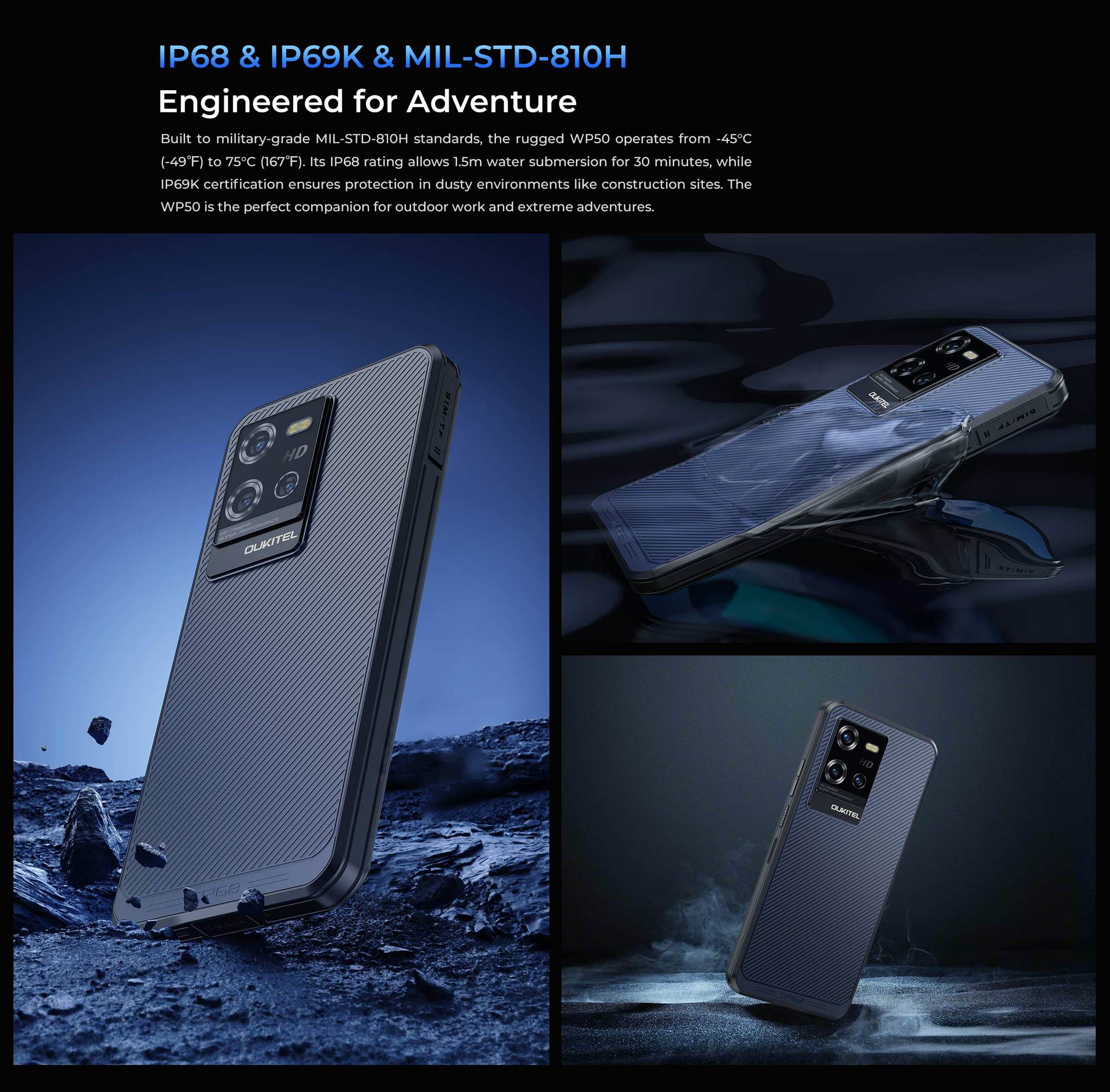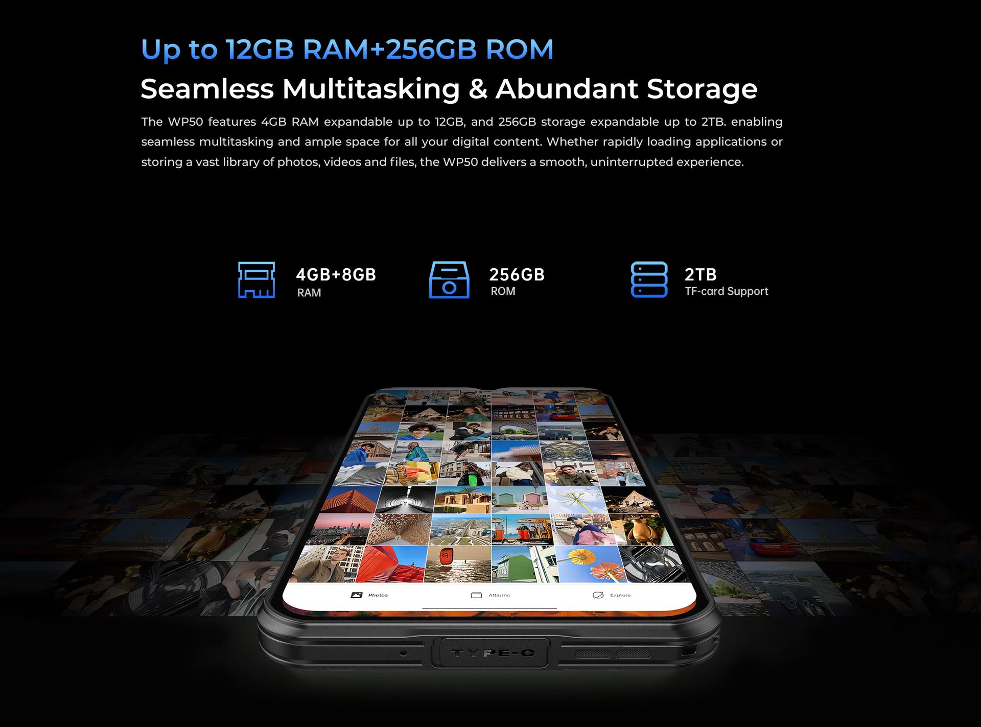 Ouqi WP50 6.6 "4 256G 6500mAh NFC 안드로이드 14 5G 3 방지 휴대 전화스토어 가기