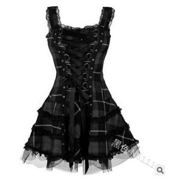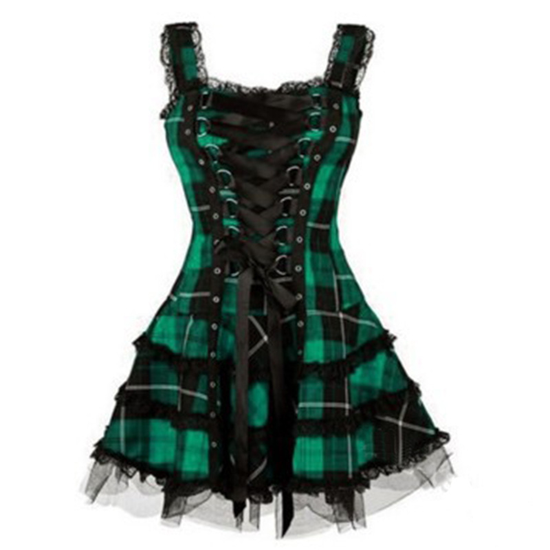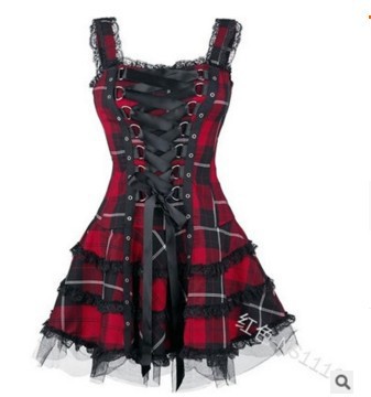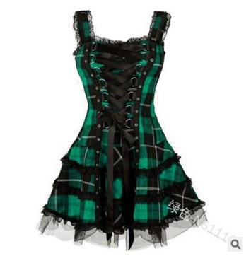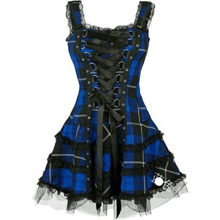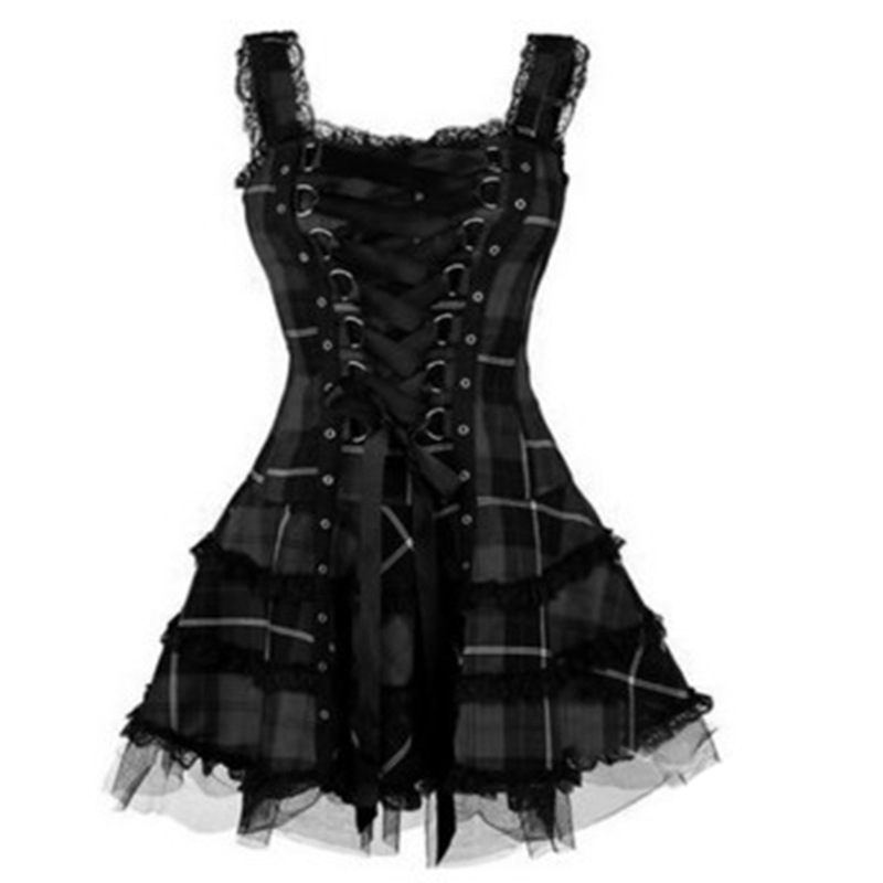 유럽과 미국의 인쇄 원피스 고딕 할로윈 미드 스커트 레이스 슬링 감성적 인 허리 스파이스 원피스스토어 가기
