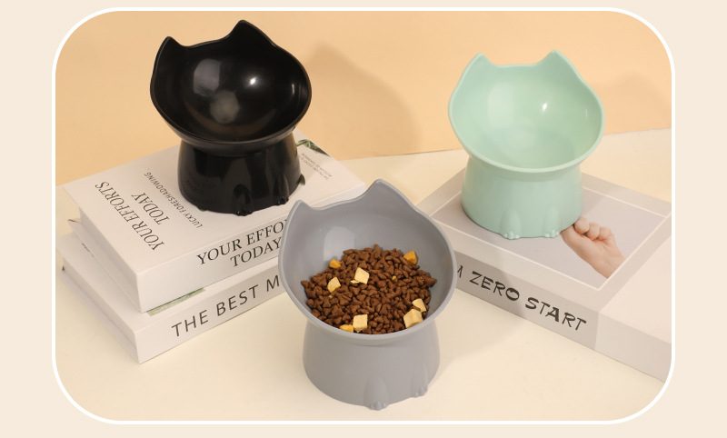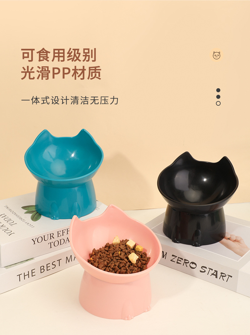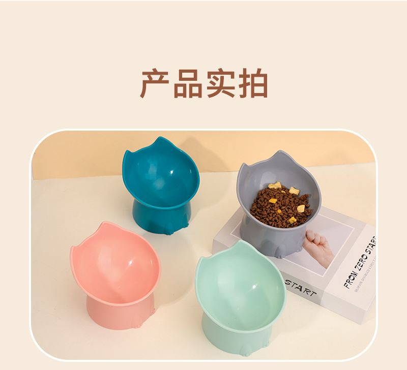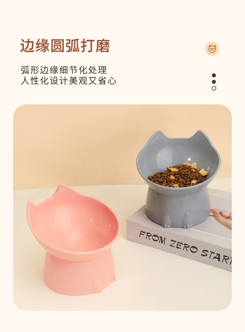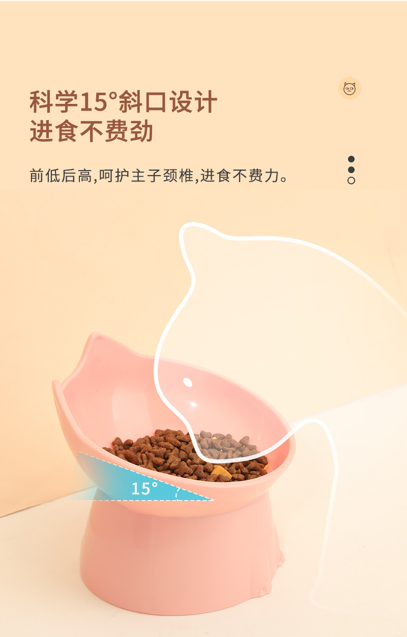 고양이 먹이 그릇은 목을 보호하고 넘어짐을 방지하며, 고양이와 강아지 먹이기구는 대용량, 경사진 입구, 목 보호 기능, 플라스틱으로 높이 조절 가능
