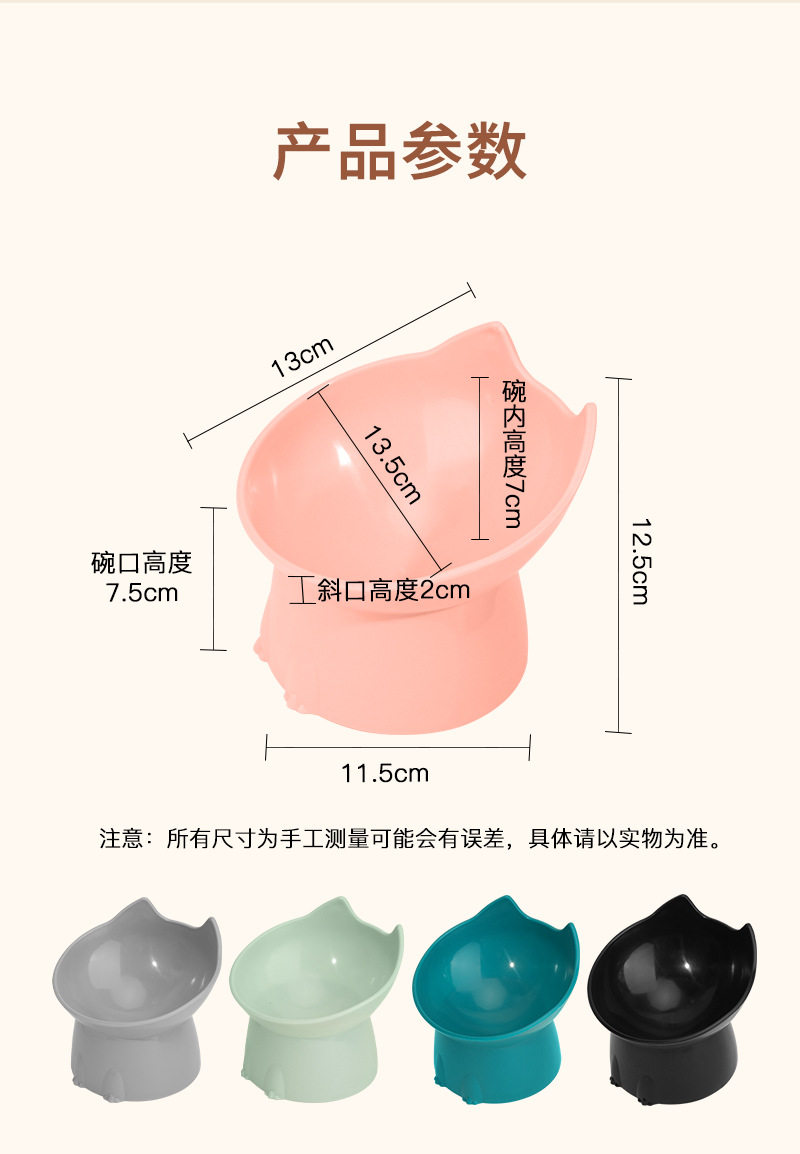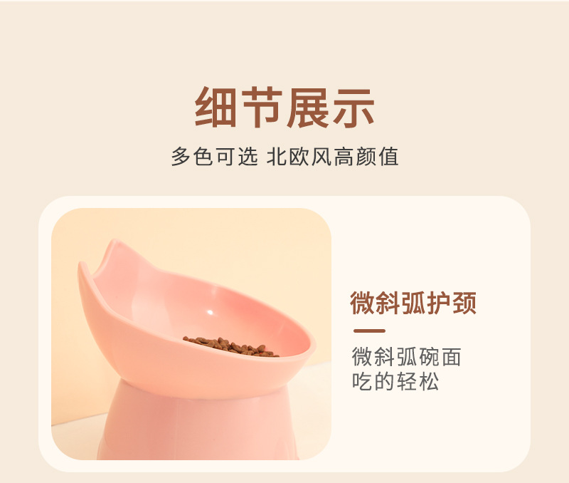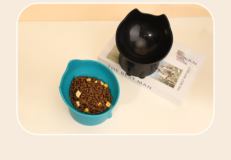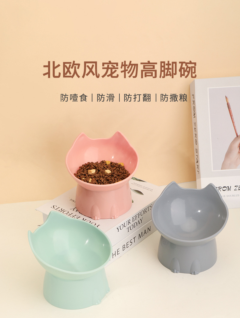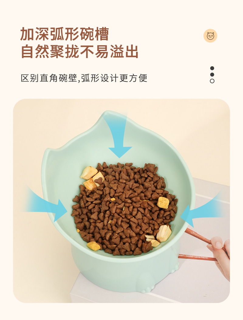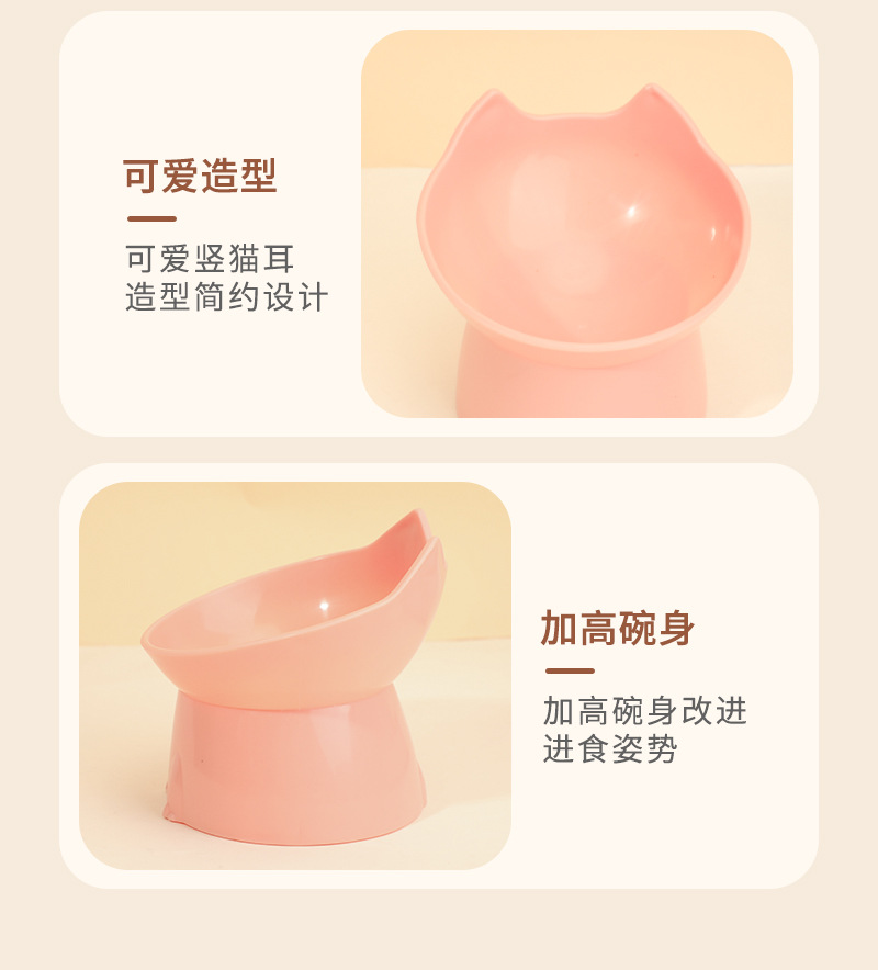 고양이 먹이 그릇은 목을 보호하고 넘어짐을 방지하며, 고양이와 강아지 먹이기구는 대용량, 경사진 입구, 목 보호 기능, 플라스틱으로 높이 조절 가능