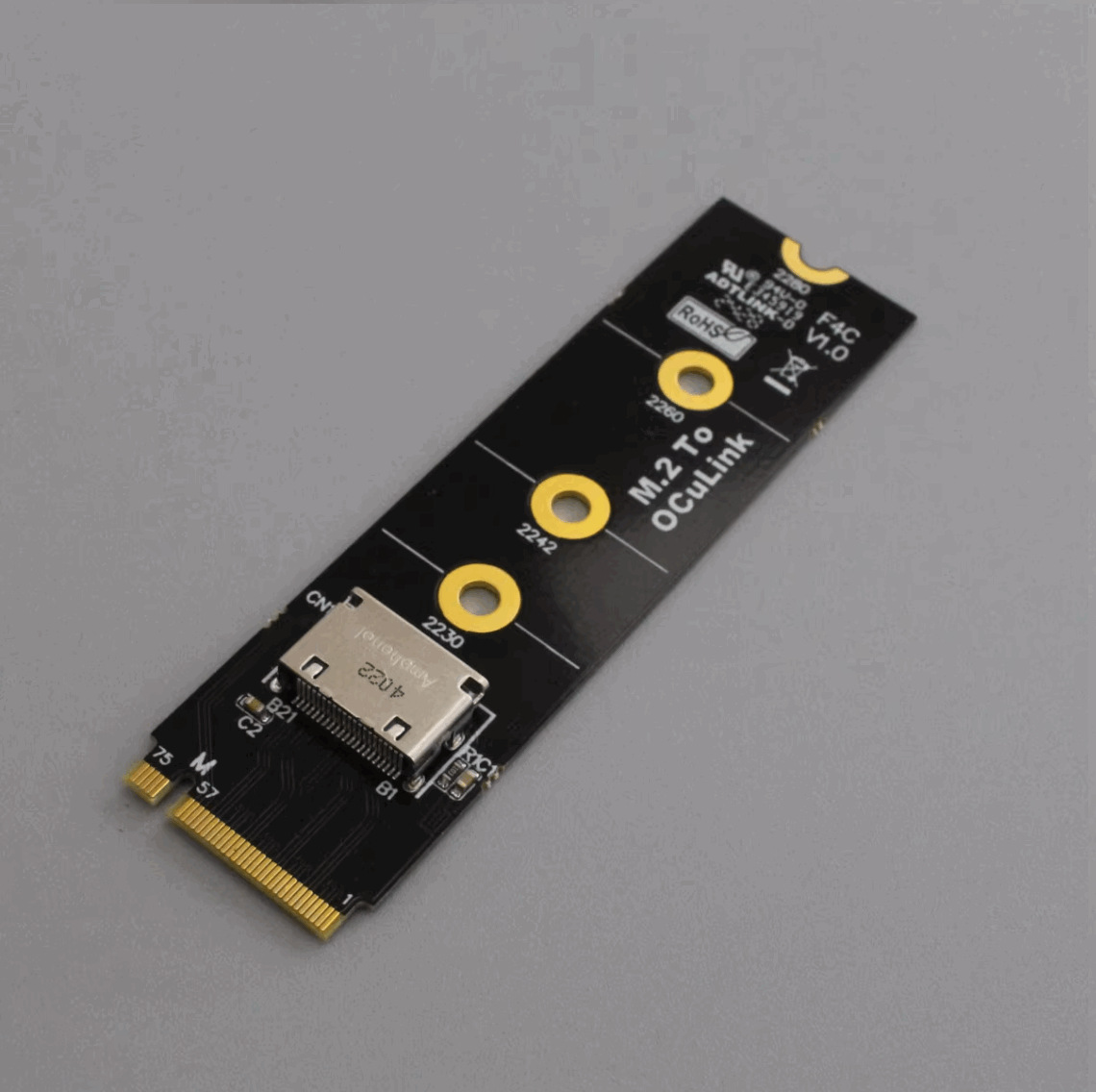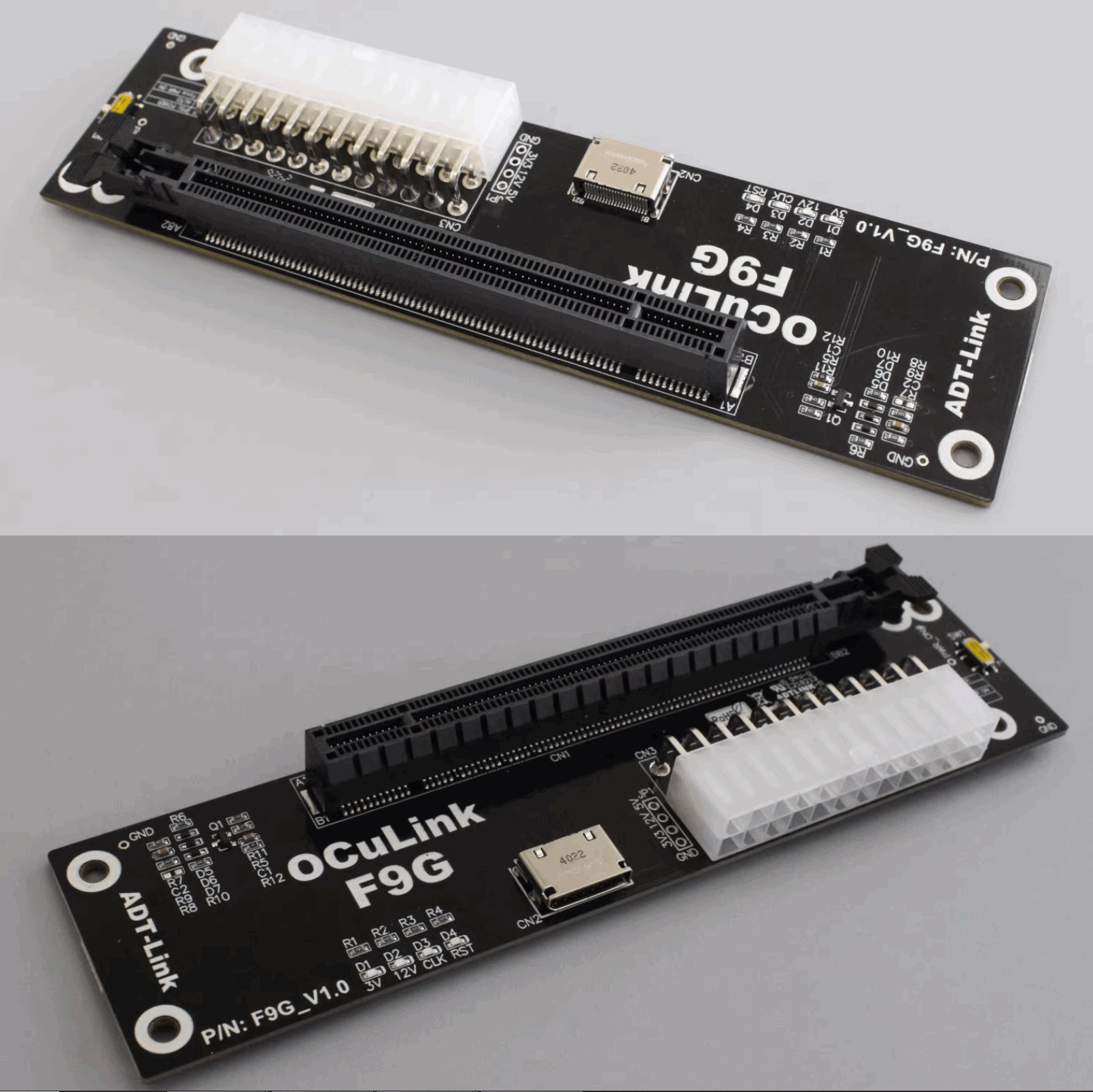 产品描述:Oculink是通过电脑主板NVME固态硬盘插槽转接出来的接口,NVME走纯PCIe通道,所以Oculink外接显卡坞走的也是PCIe通道,性能损耗小。相较于传统雷电转接方案,Oculink在PCIe 4.0 x4的情况下的有效带宽可达到64Gbps,远超雷电方案。