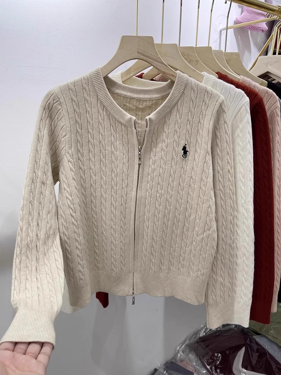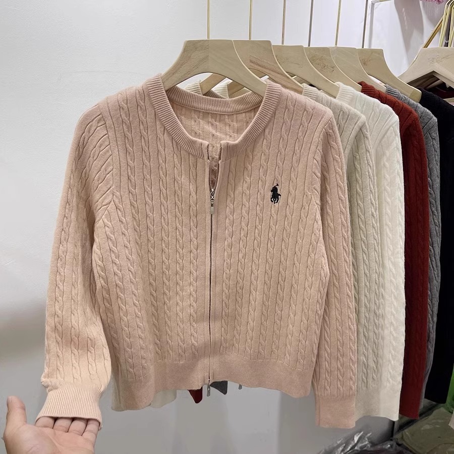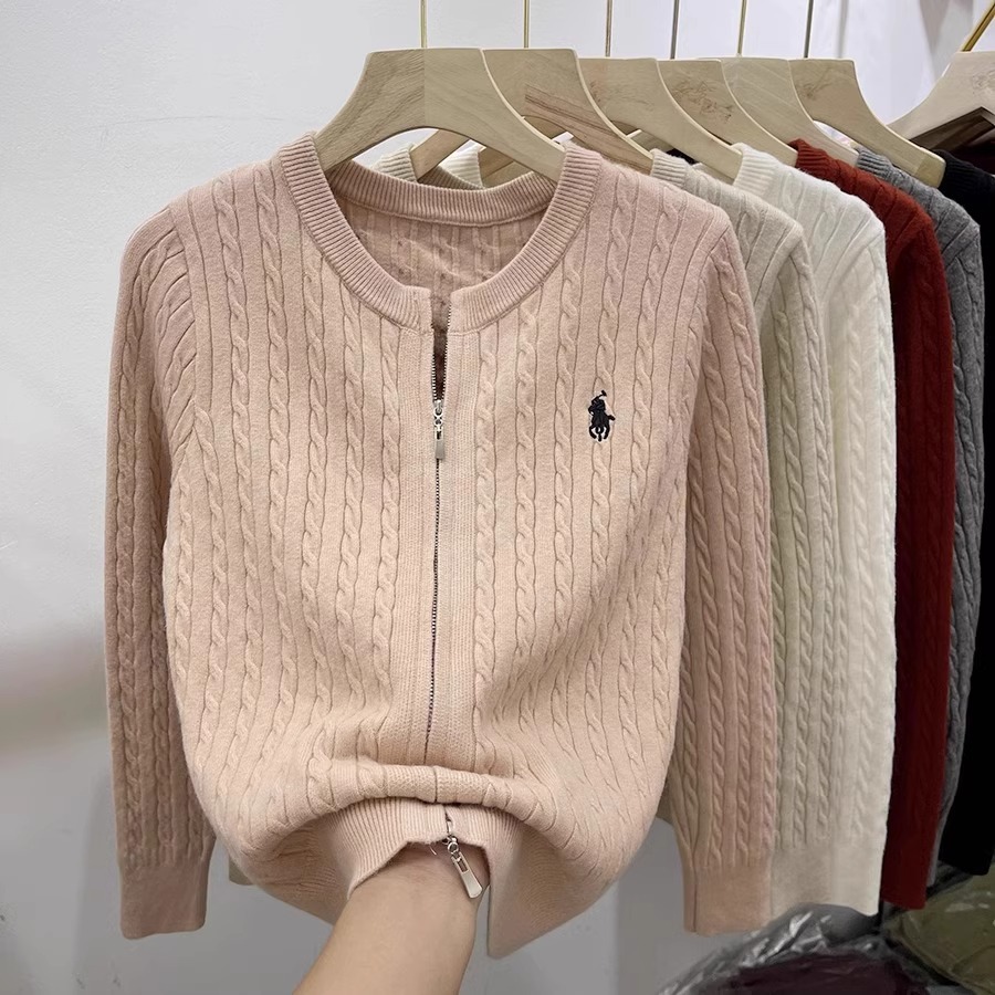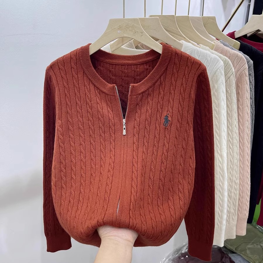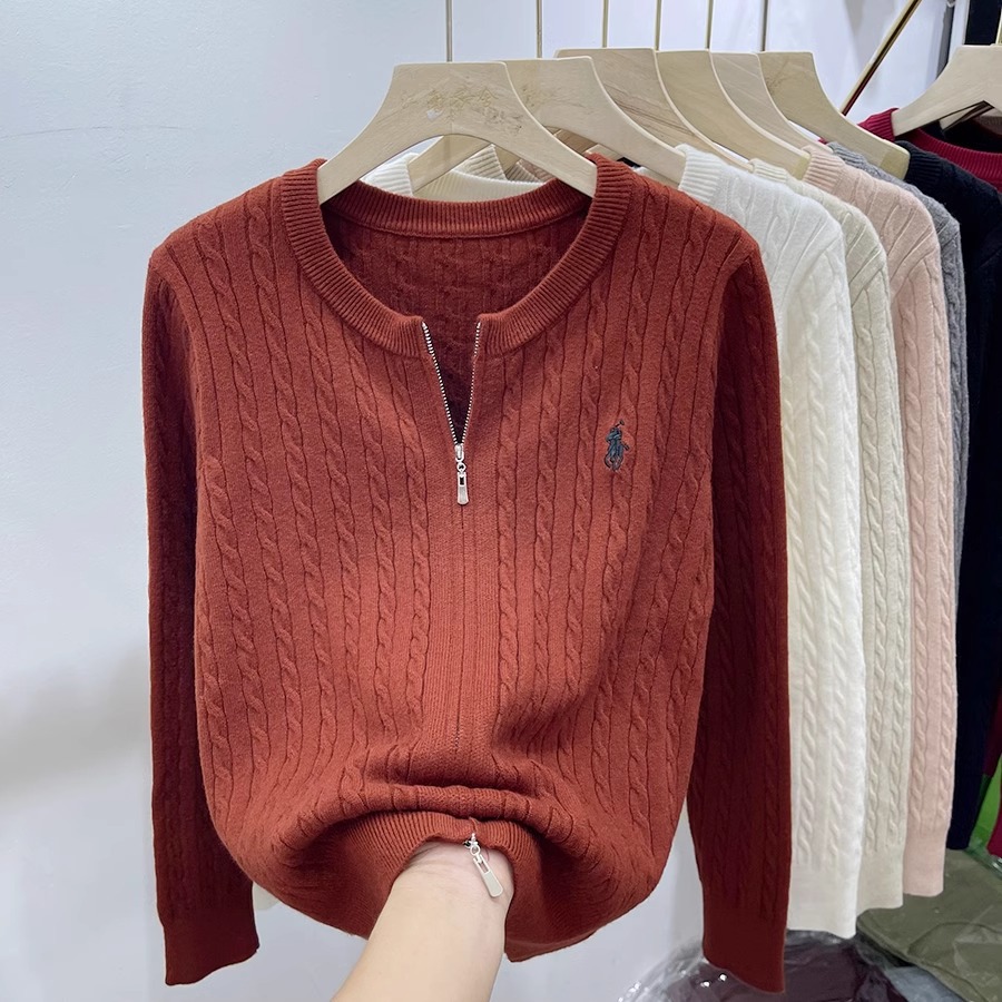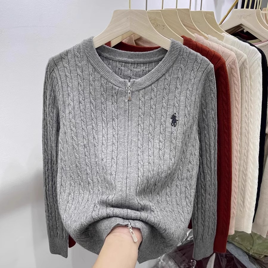 여성을위한 더블 지퍼 트위스트 자수 니트 카디건 봄 새로운 라운드 넥 긴팔 연령 감소 스웨터 재킷 다목적 탑