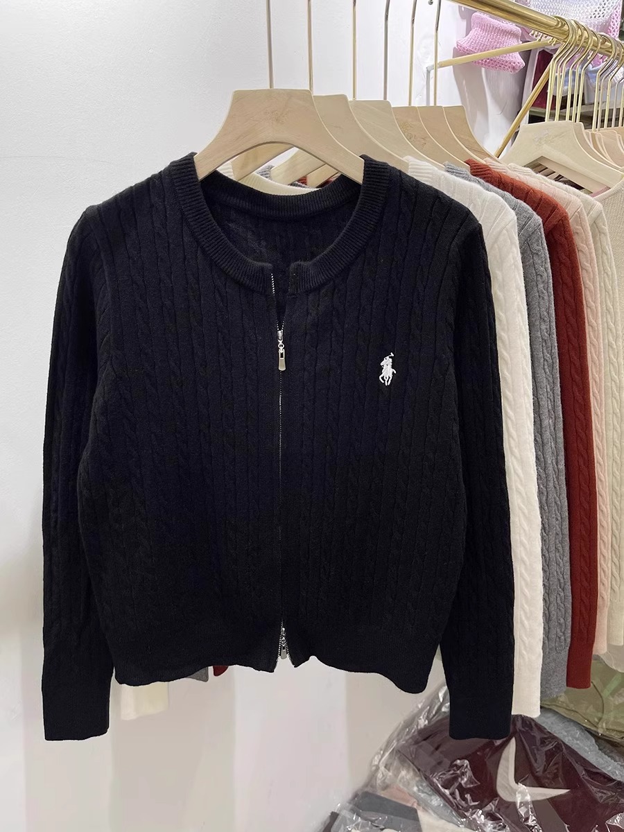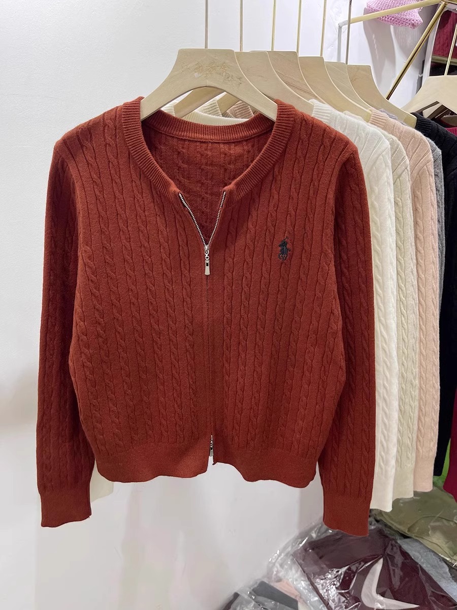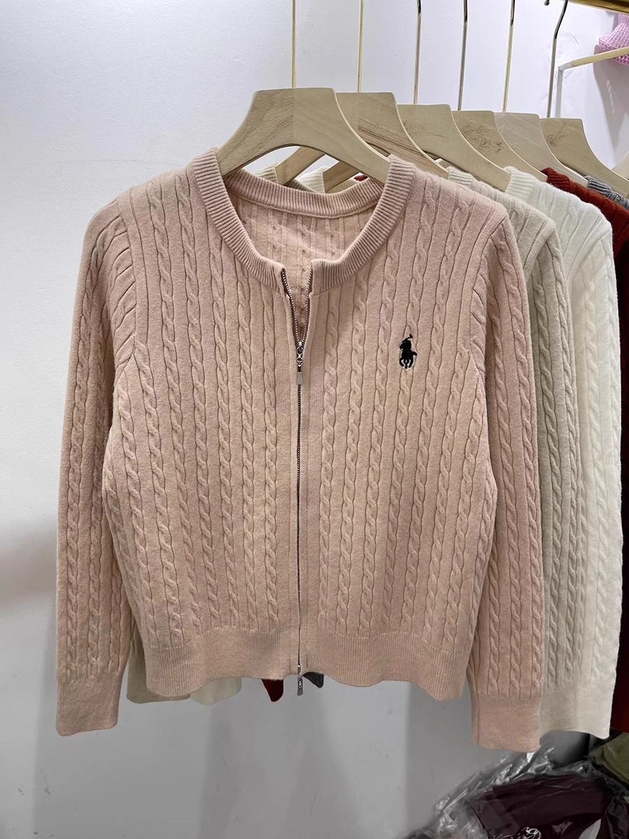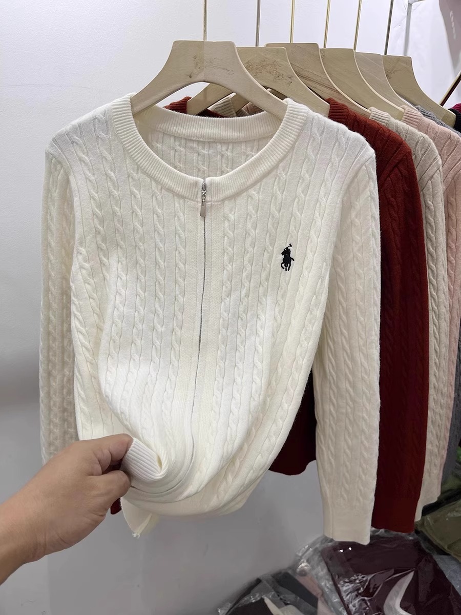 여성을위한 더블 지퍼 트위스트 자수 니트 카디건 봄 새로운 라운드 넥 긴팔 연령 감소 스웨터 재킷 다목적 탑