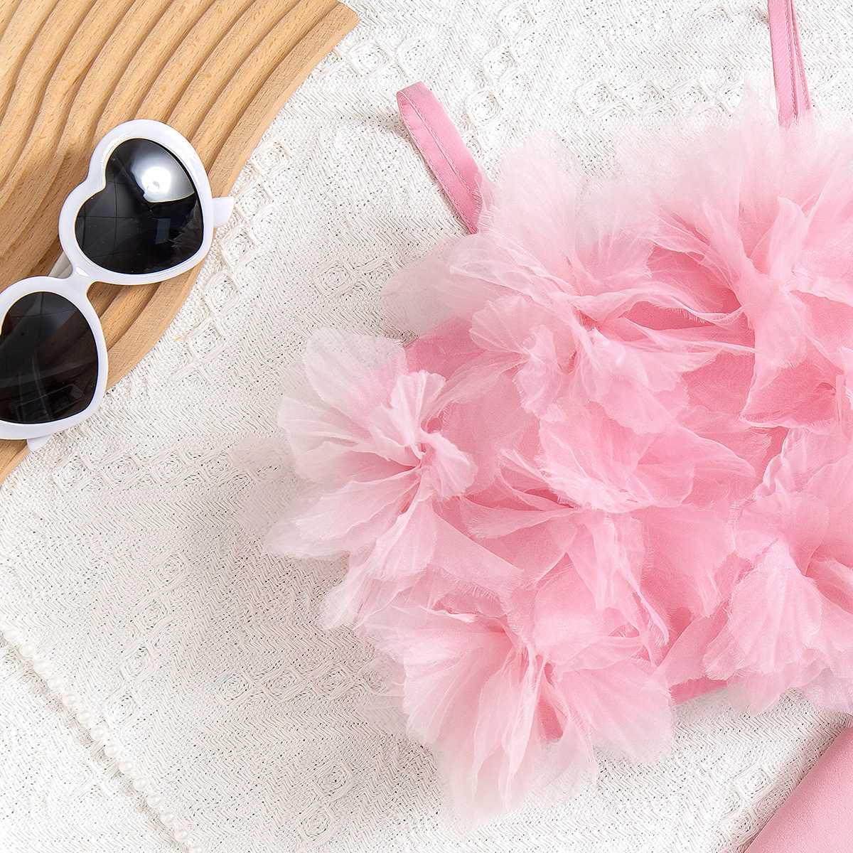 2024 유럽과 미국의 패션 여름 소녀 세트 어린이 슬링 메쉬 꽃 조끼 세트 바지 2 피스 세트스토어 가기