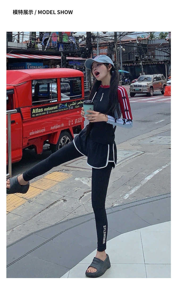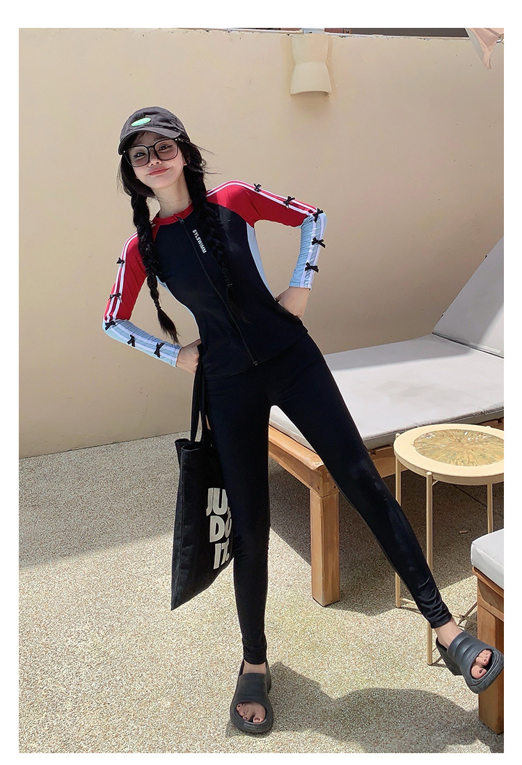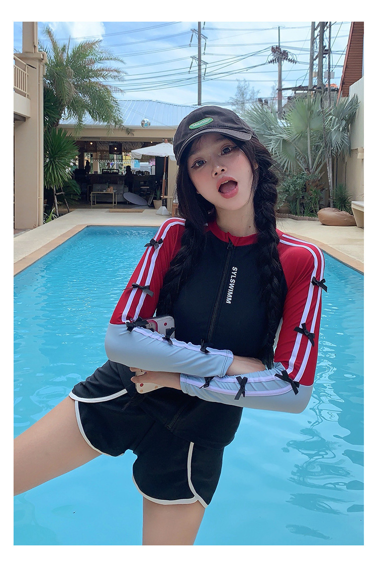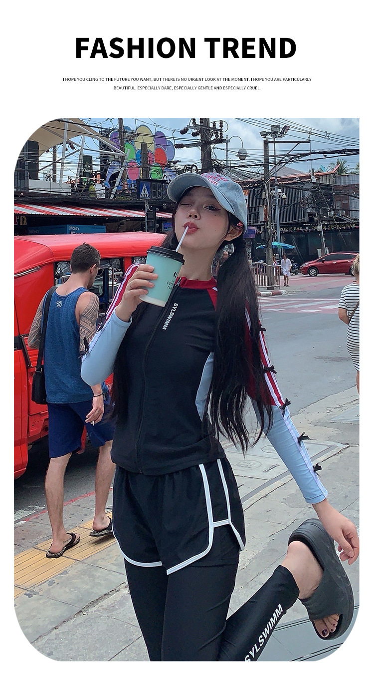 한국 2024 휴일 수영복 분할 보수적 인 태양 보호 빠른 건조 다이빙 세트 긴팔 스포츠 서핑 학생 수영복스토어 가기