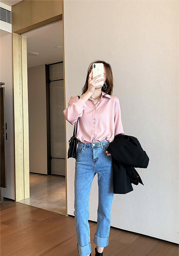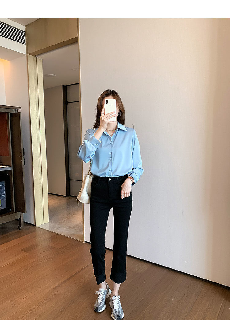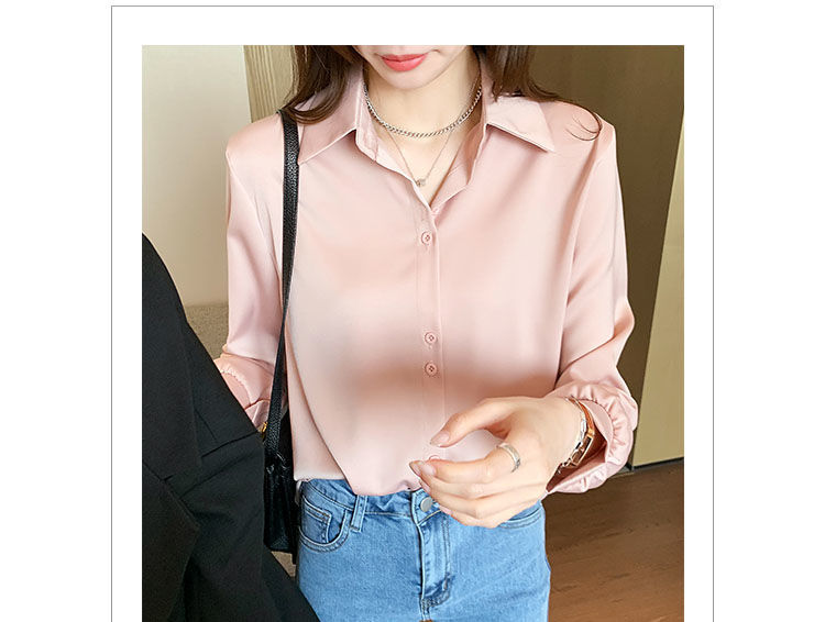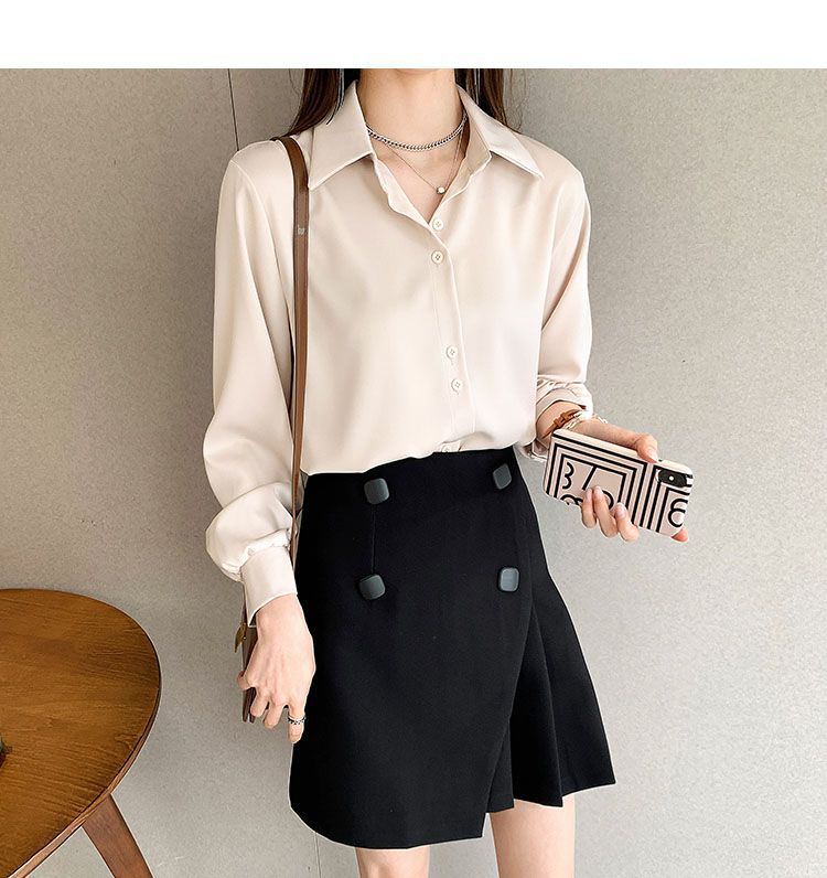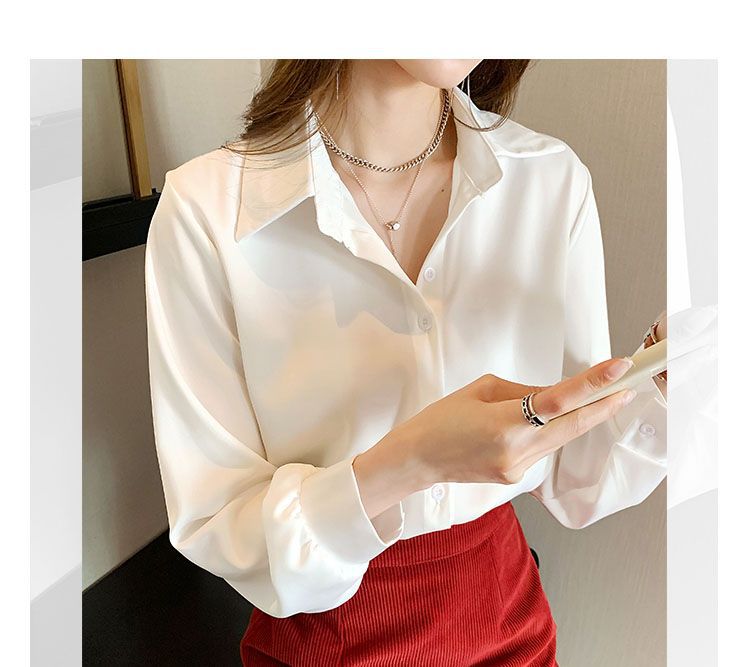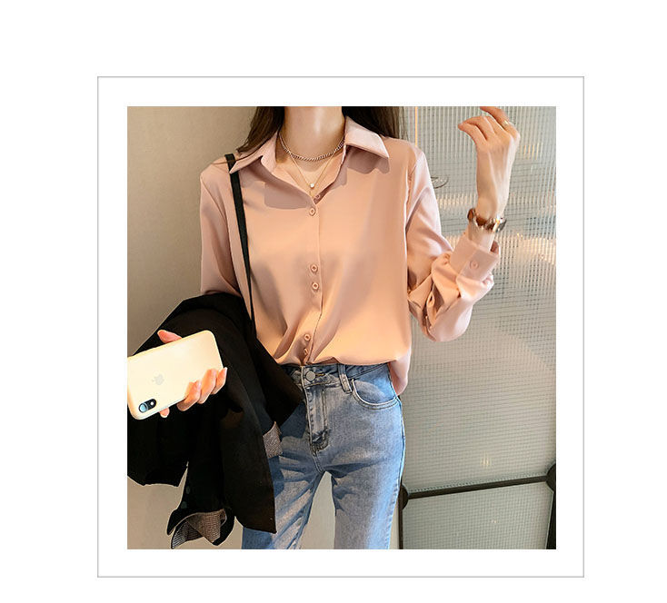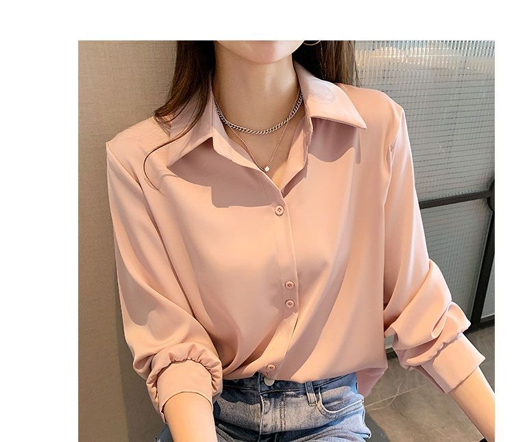 2024 봄과 가을 패션 여성 긴팔 쉬폰 셔츠 여성 느슨한 올매치 틈새 디자인 전문 캐주얼 탑 트렌디스토어 가기