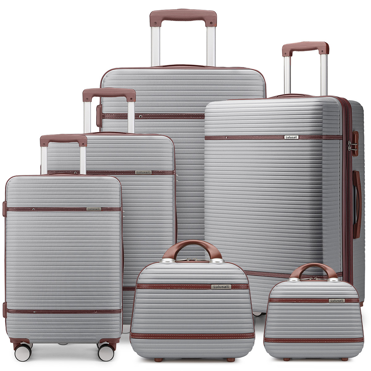 Huayang 가방 맞춤형 회색 ABS 6피스 트롤리 가방 여행 가방 세트 대외 무역
