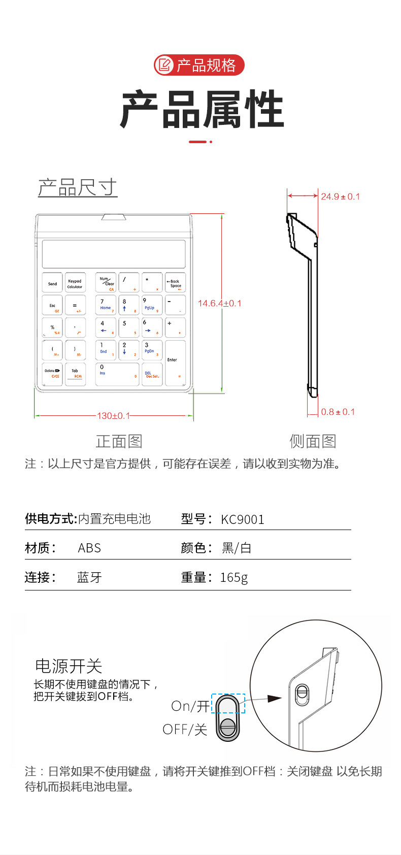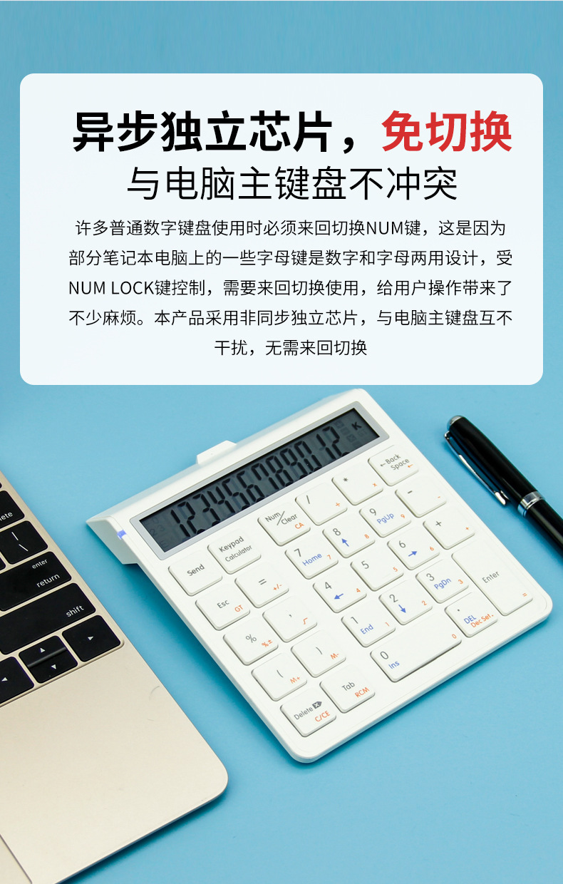 블루투스 무선 숫자 키패드 재무 회계 충전식 소형 디스플레이 휴대용 계산기 무음 디자인
