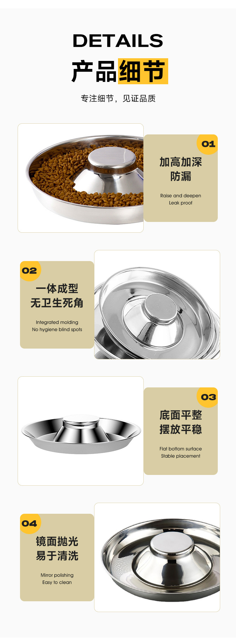 스테인레스 스틸 애완 동물 그릇 느린 음식 그릇 큰 고양이 개 테디 애완 동물 피더 그릇 애완 동물 용품 도매