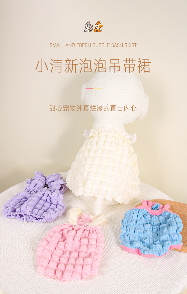 여름 애완동물 의류 보라색 퍼프 드레스 강아지 털 방지 테디 비숑 요크셔 소형견스토어 가기