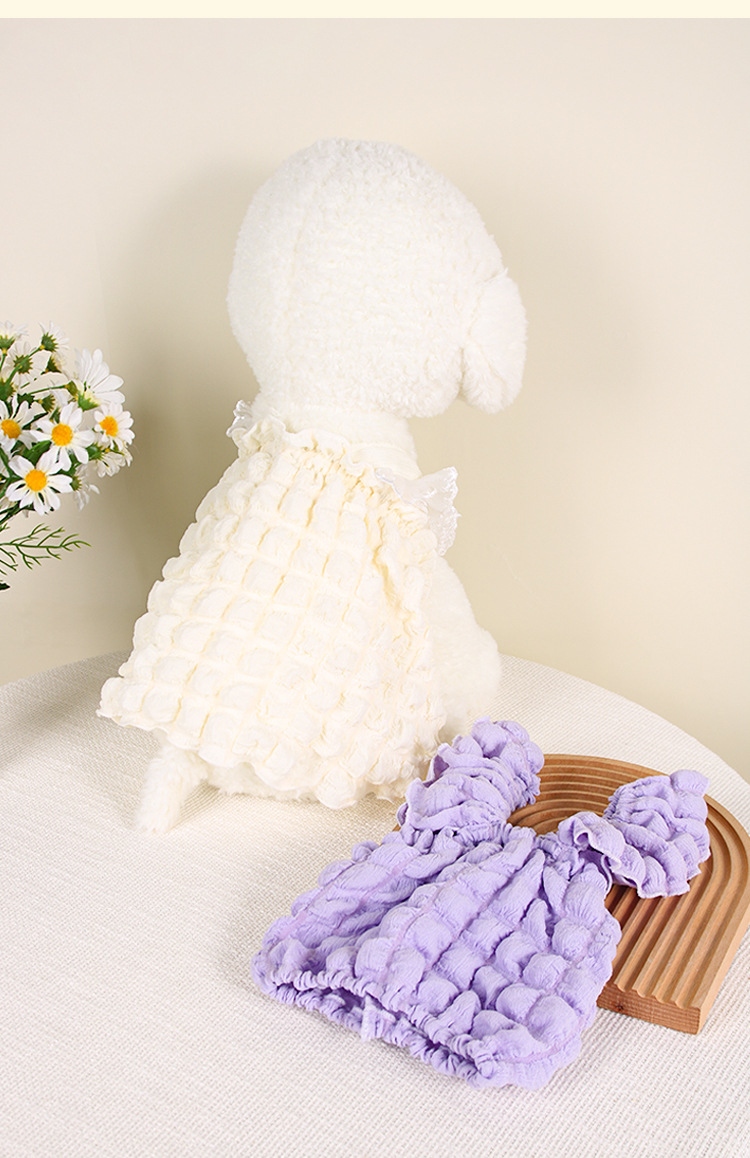 여름 애완동물 의류 보라색 퍼프 드레스 강아지 털 방지 테디 비숑 요크셔 소형견