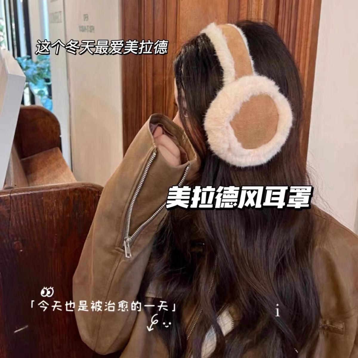 겨울 Maillard 다크 브라운 봉제 귀마개 따뜻한 부동액 귀여운 승마 귀마개 높은 색상 가치 승마 커버