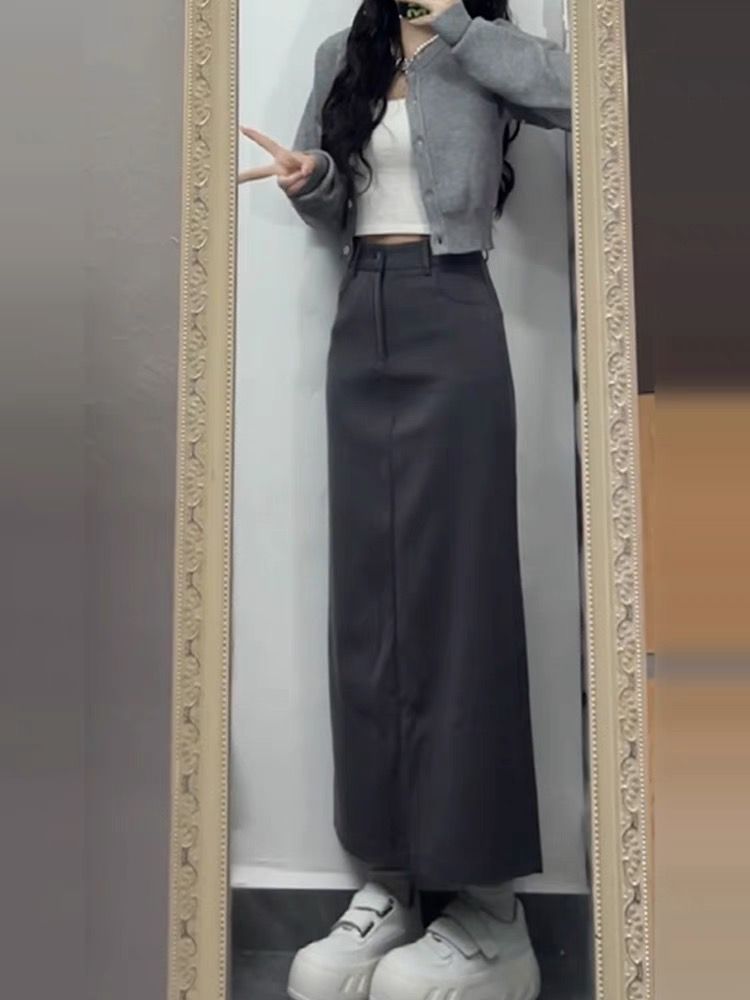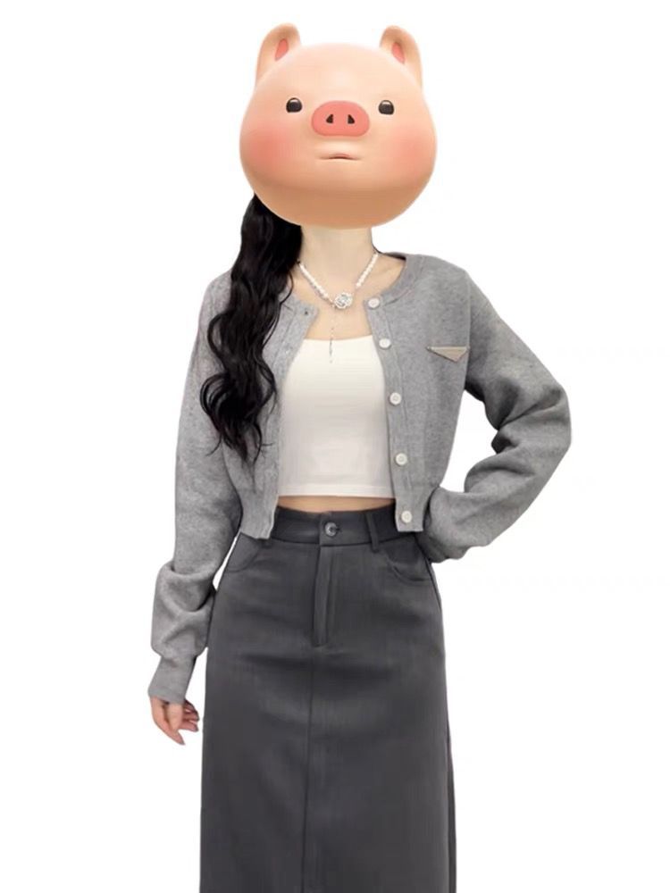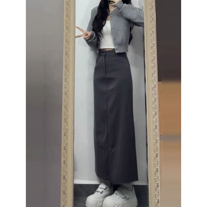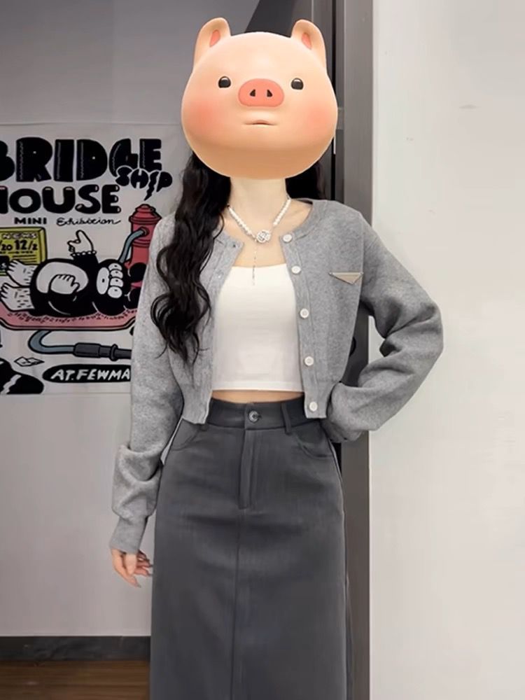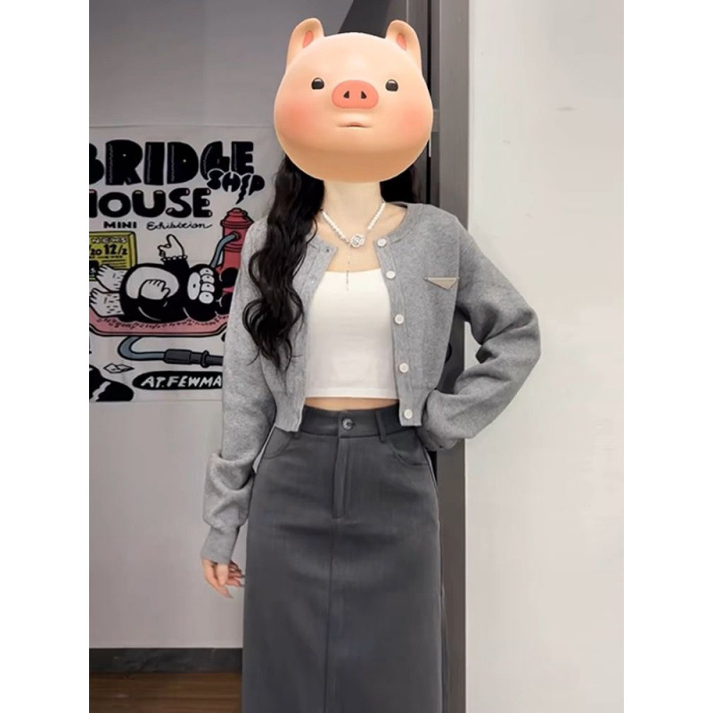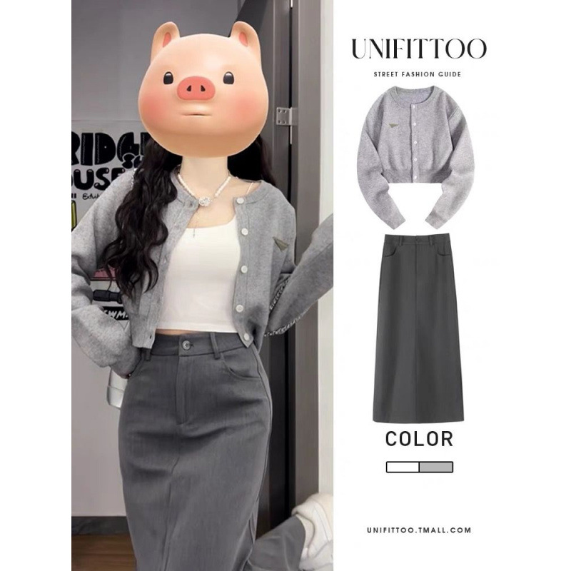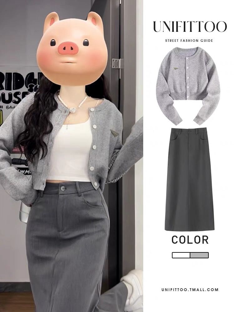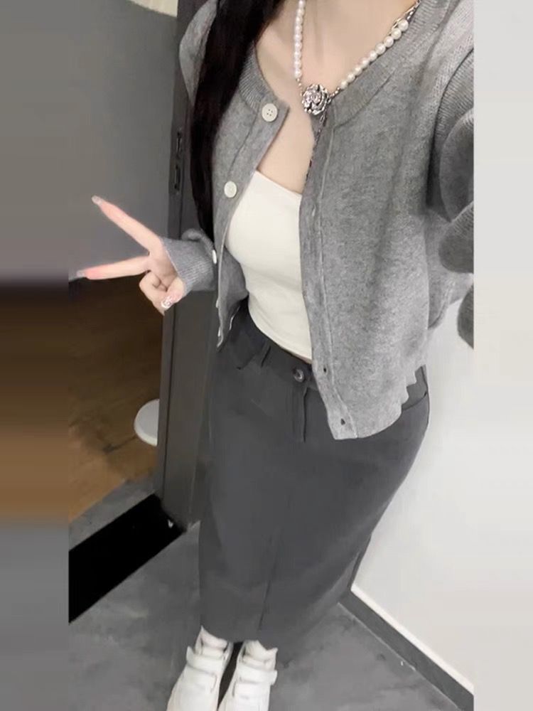 • 그레이 가디건 + 스커트