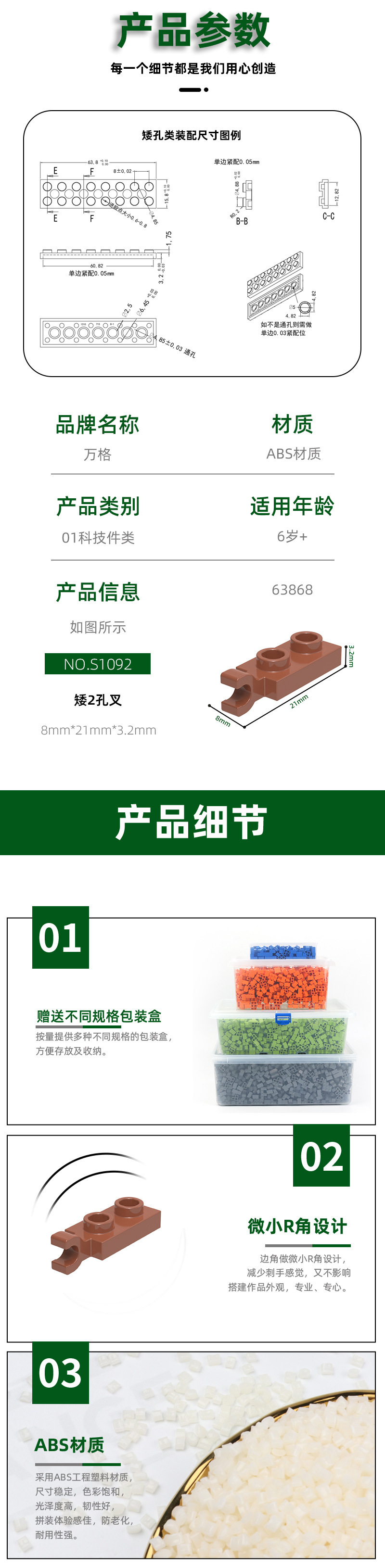 Wange diy 작은 입자 국내 빌딩 블록 63868 조립 부품 낮은 2 홀 포크 과학 및 교육 장난감 액세서리와 호환