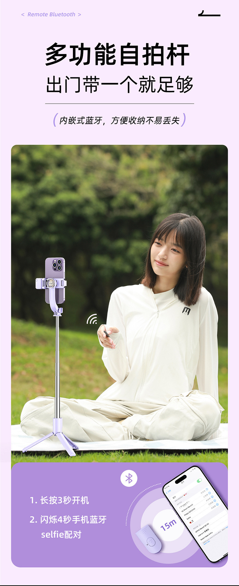 • 매트모델 [연근분말] 블루투스 리모컨/망원경 일체형 삼각대