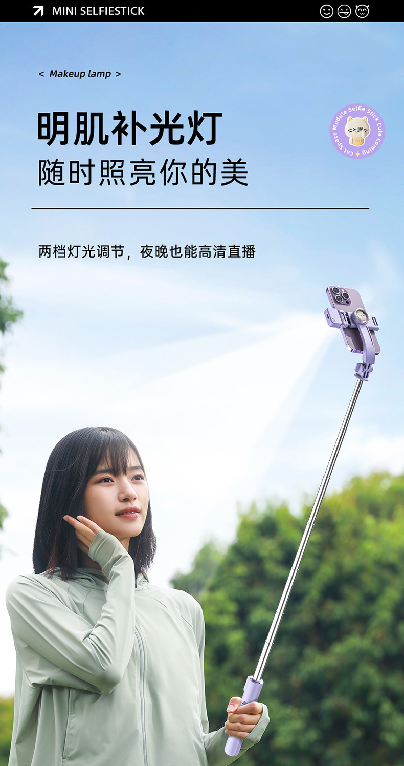 휴대 전화 블루투스 셀카 스틱 텔레스코픽 라이브 방송 사진 스탠드 만화 올인원 데스크탑 원격 제어 삼각대 필 라이트