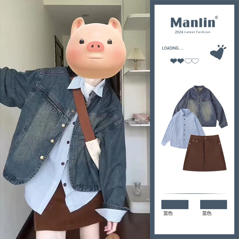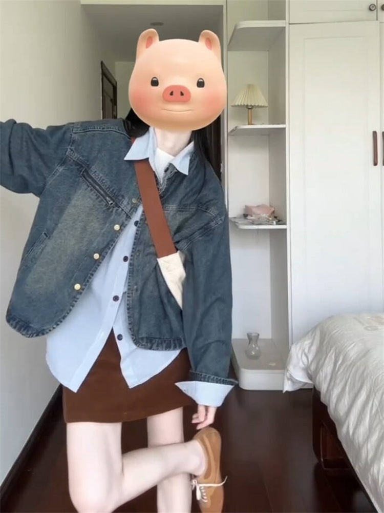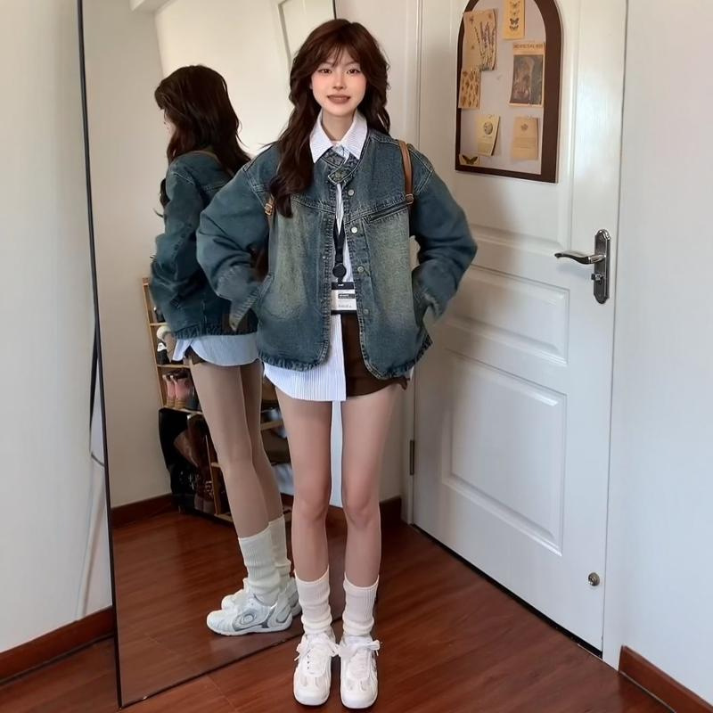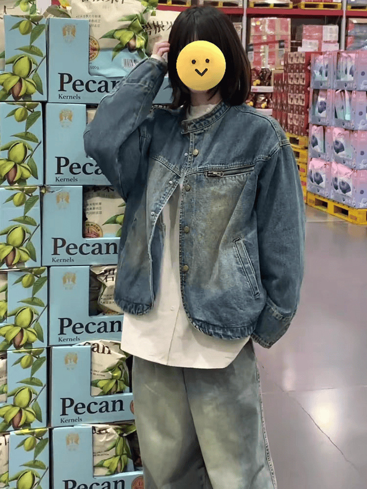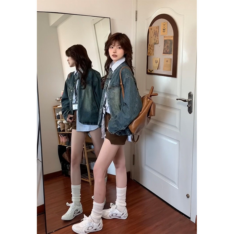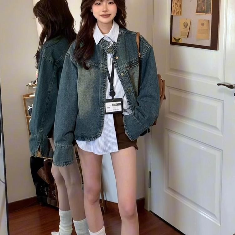 아메리칸 스타일 레트로 홍콩 스타일 데님 코트 여성의 가을과 겨울 불규칙한 느슨한 옷깃 세탁 오래된 카디건 재킷 탑스토어 가기