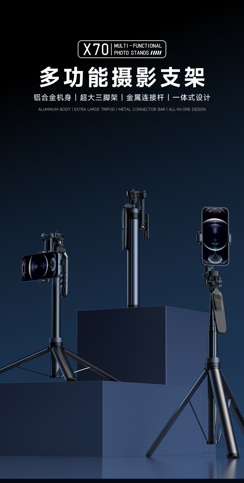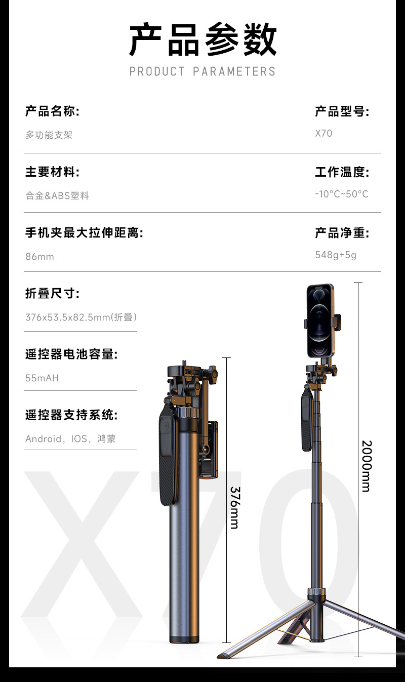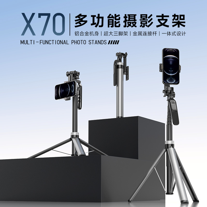 X70 업그레이드 휴대 전화 블루투스 셀카 스틱 야외 라이브 안티 쉐이크 스탠드 마그네틱 오픈 삼각대