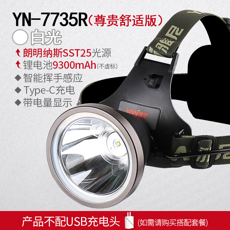 Yanni 7735R 헤드 램프 강한 빛 충전 슈퍼 밝은 머리 장착 손전등 야외 조명 광부의 램프 긴 내구성