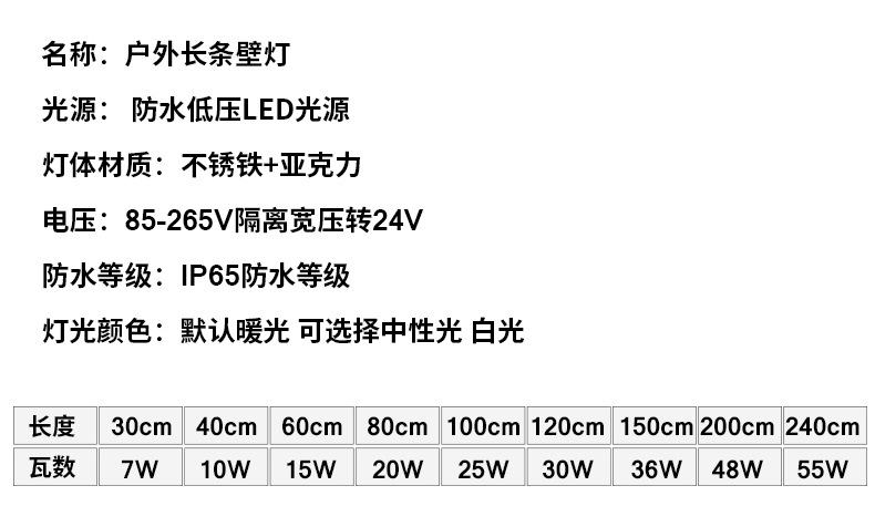 소스 제조 업체 긴 스트립 빌라 정원 램프 배경 벽 방수 아크릴 야외 벽 램프스토어 가기