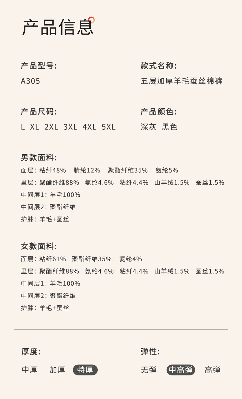 • 다크그레이 - 남성용 증점 790g [울 100% 충전재 + 울 실크 무릎 패드]