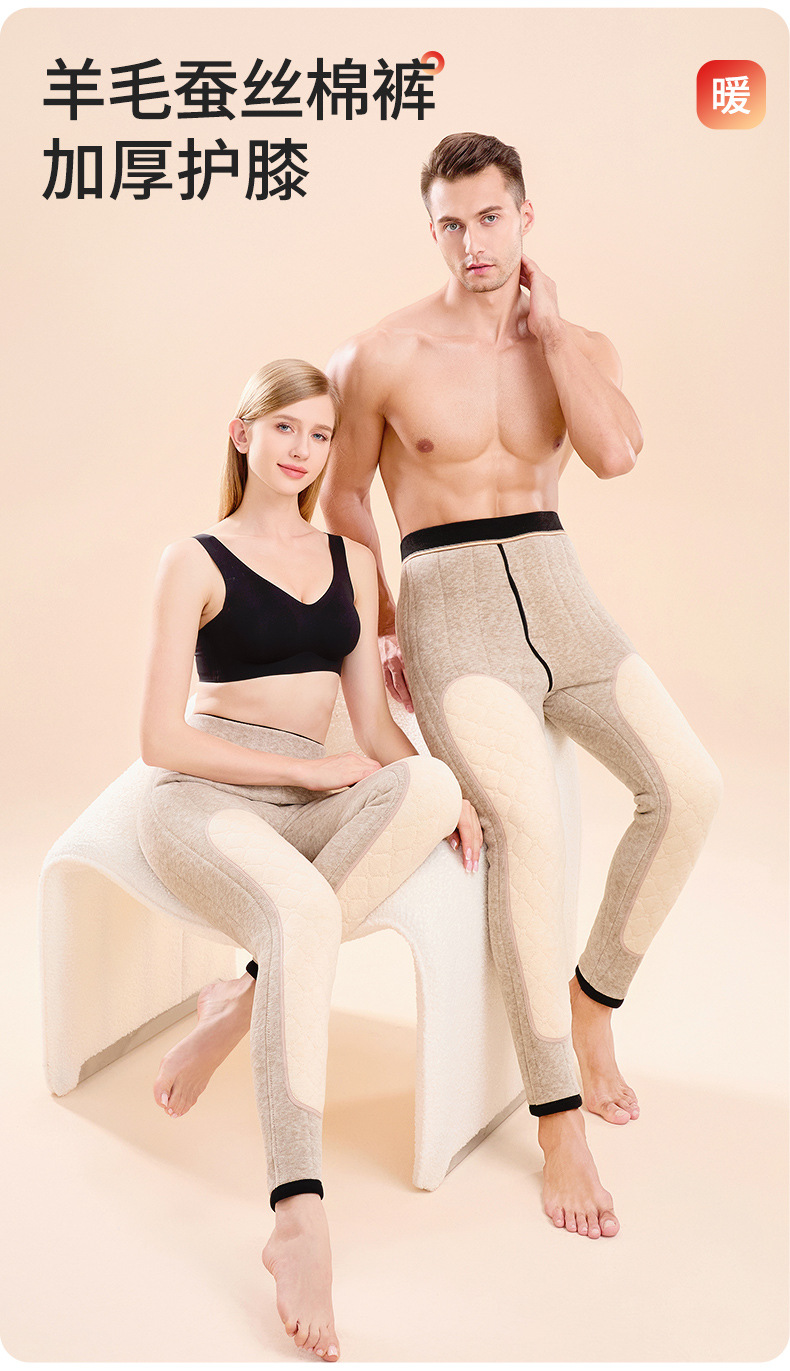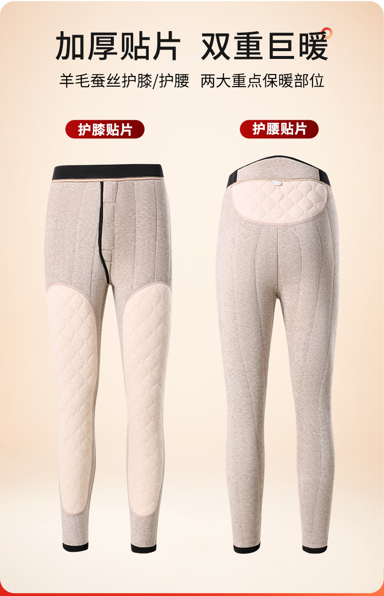 천연 실크 울 코튼 팬츠 여성용 겨울용 플러스 벨벳 무릎 보호 보온 팬츠 내부 착용 발열 초두꺼운 방한 베이스 레이어 가을 바지스토어 가기