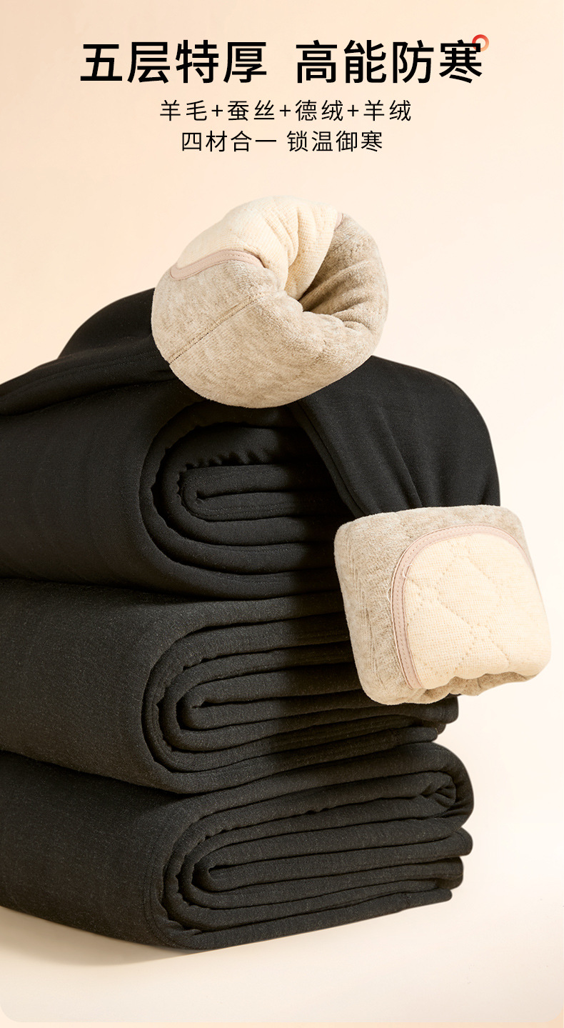 천연 실크 울 코튼 팬츠 여성용 겨울용 플러스 벨벳 무릎 보호 보온 팬츠 내부 착용 발열 초두꺼운 방한 베이스 레이어 가을 바지