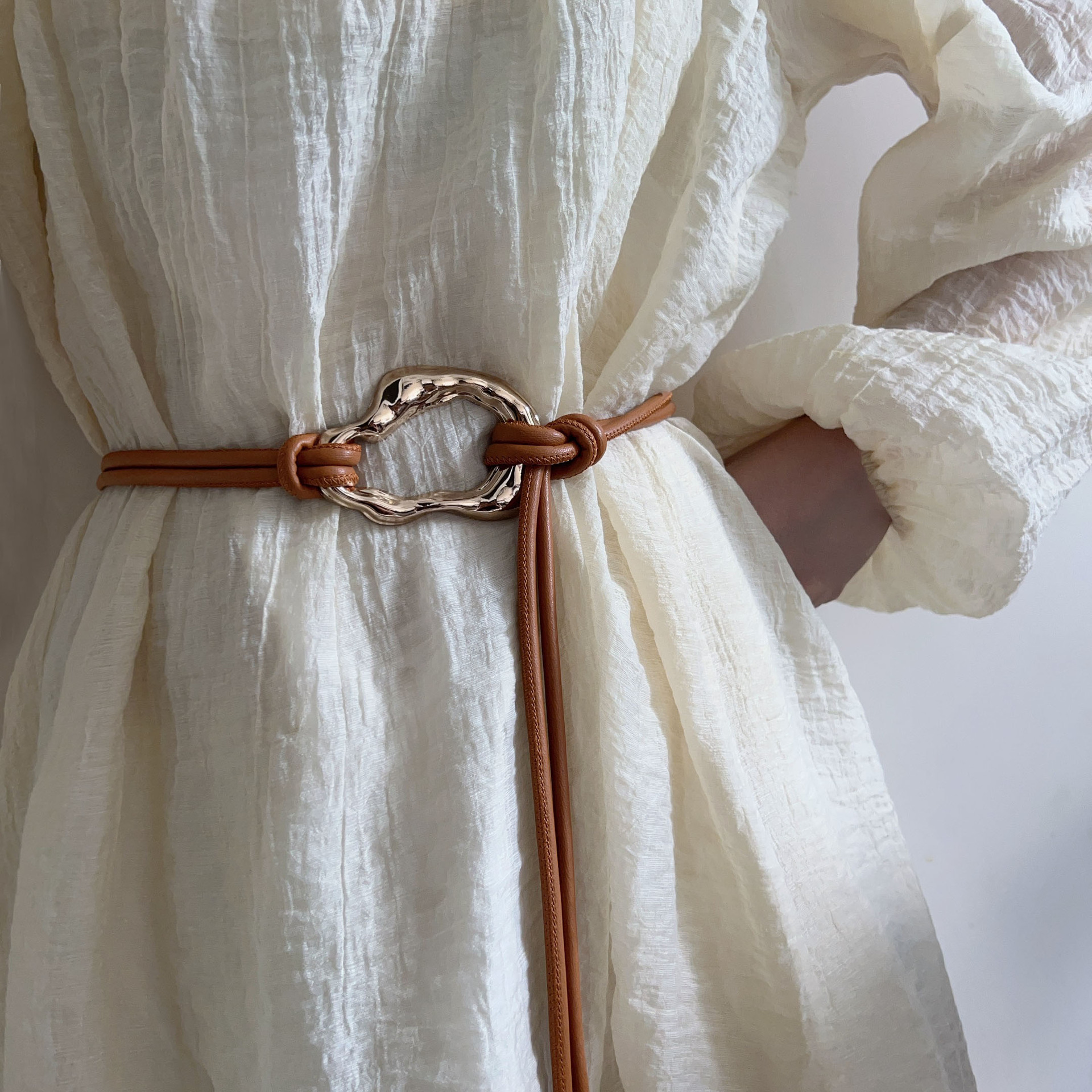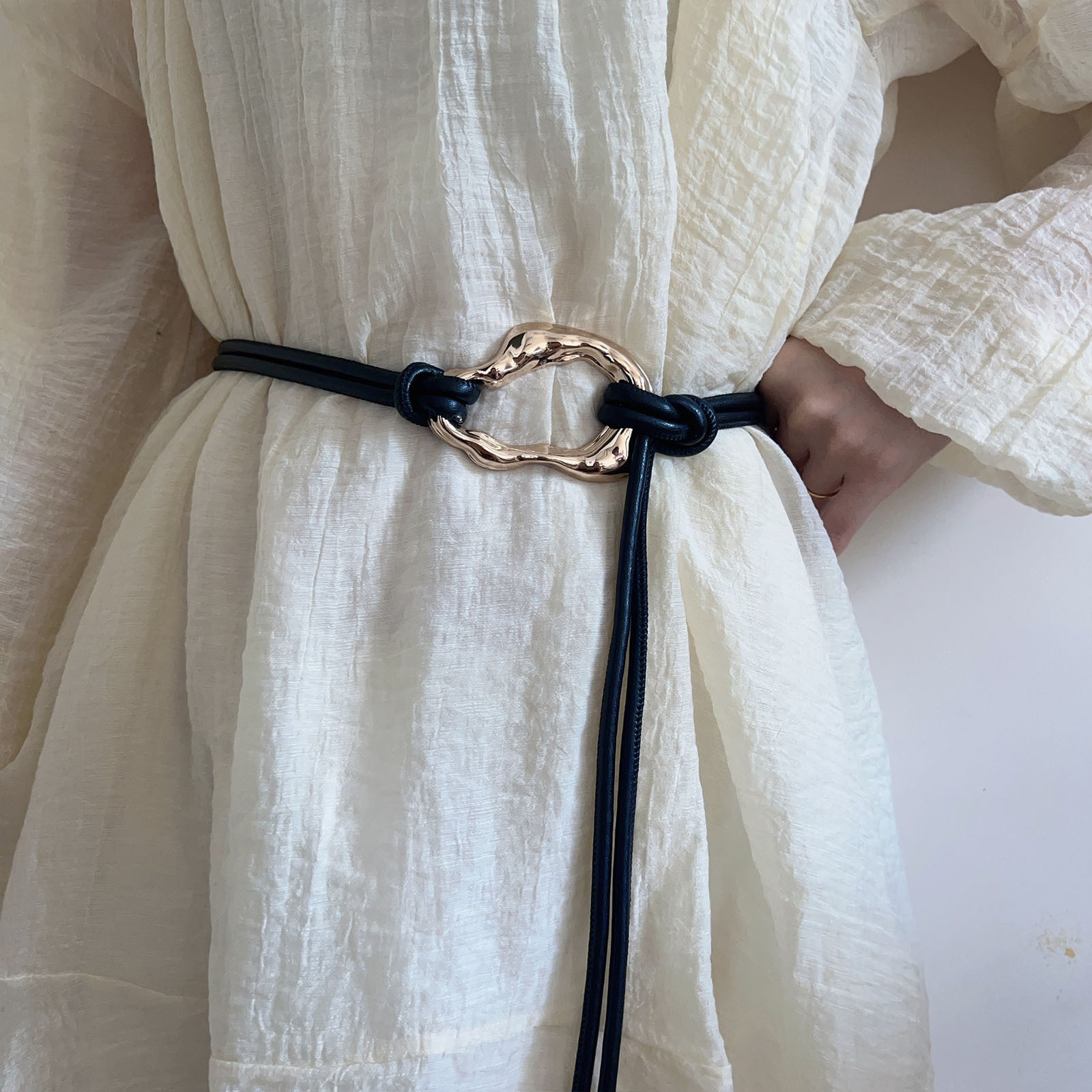 새로운 부드러운 가죽 허리 로프 여성용 레트로 허리 체인 틈새 디자인 장식 간단한 벨트 긴 원피스 코트 벨트