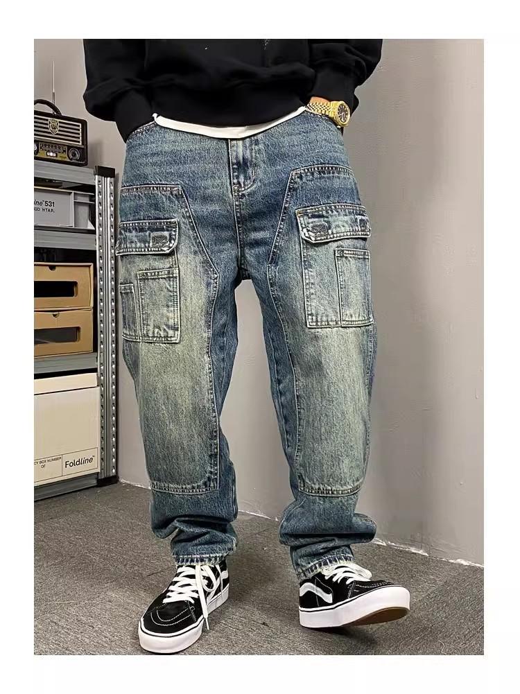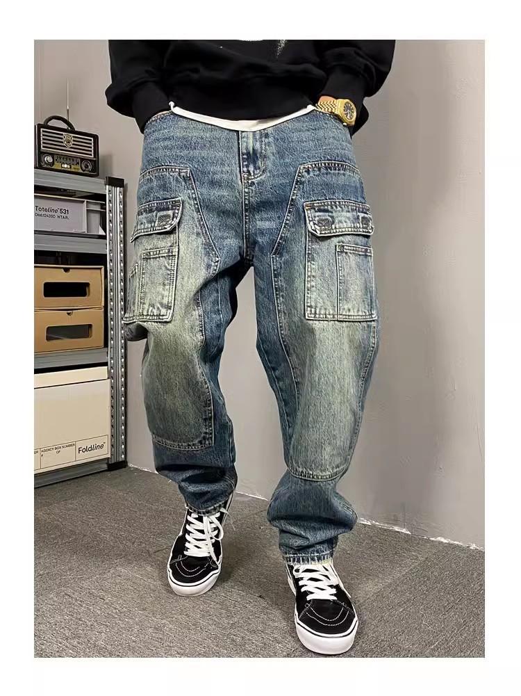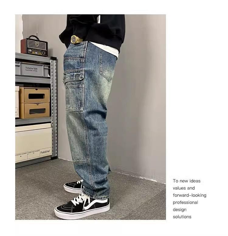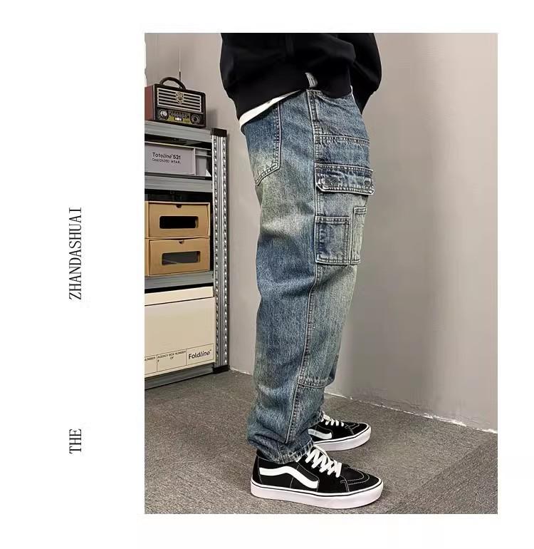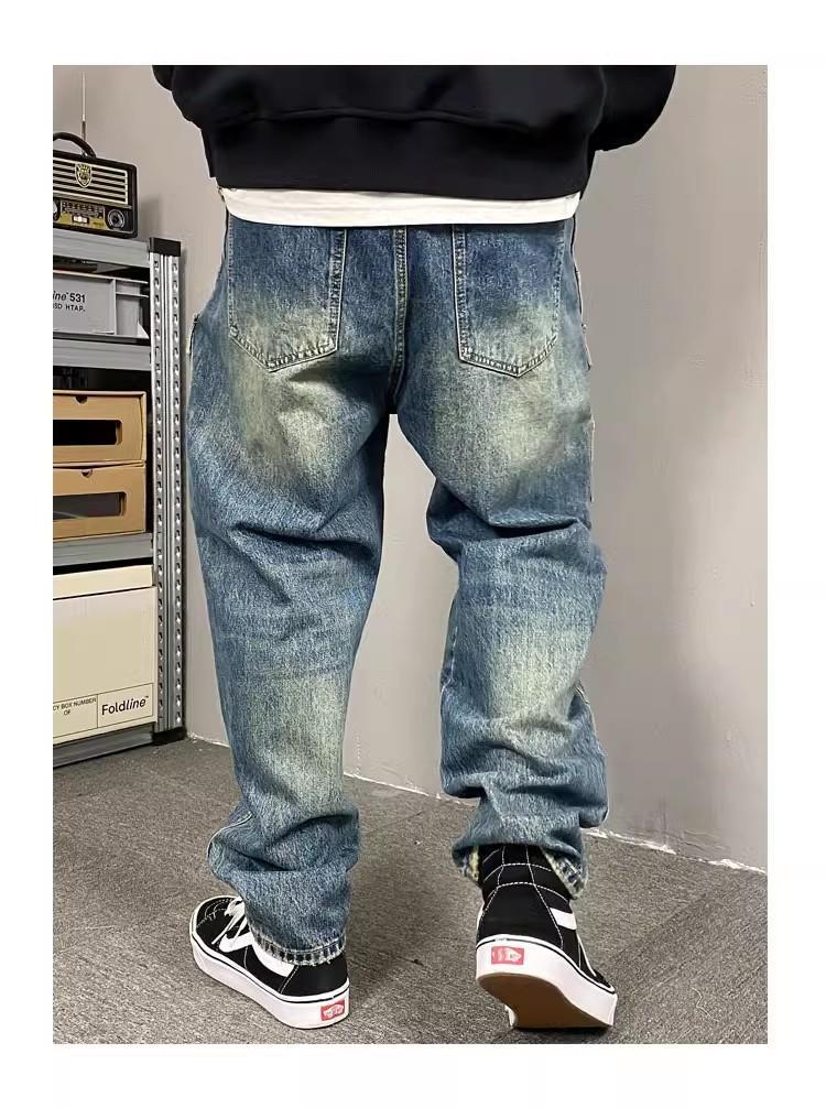 봄과 가을 미국 캐주얼 강아지 잘 생긴 빈티지 툴링 청바지 남성용 스트레이트 루즈 하이 스트리트 테이퍼 트렌디 팬츠스토어 가기