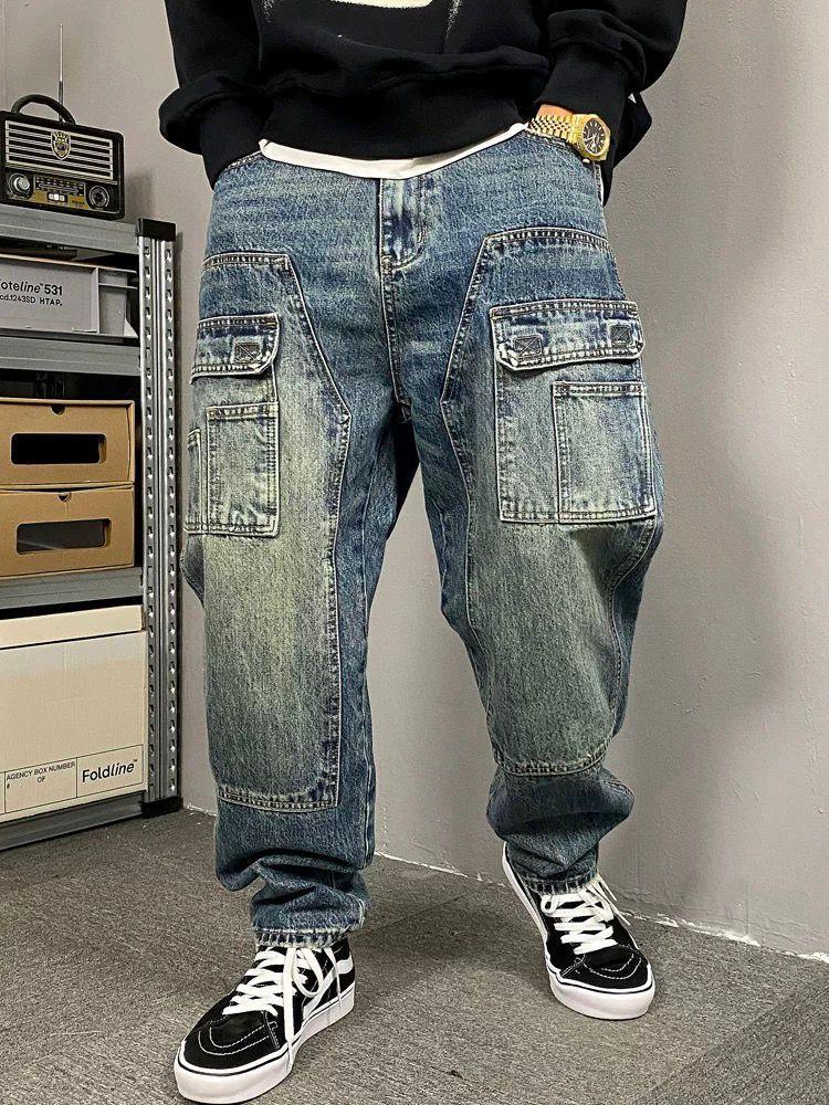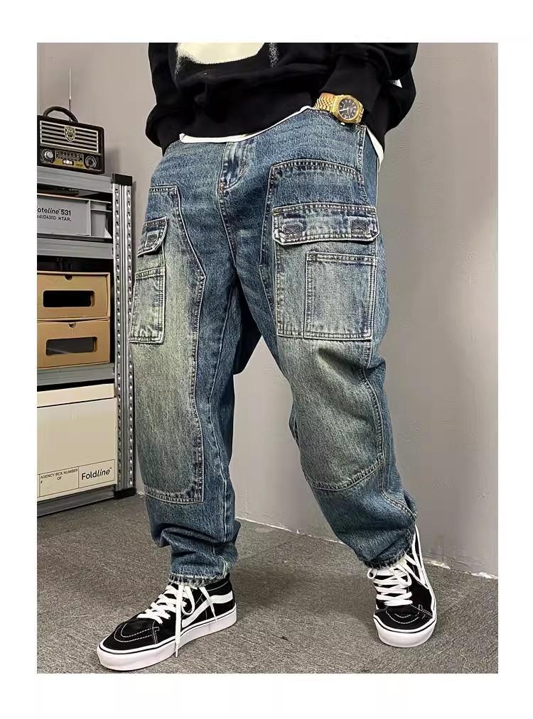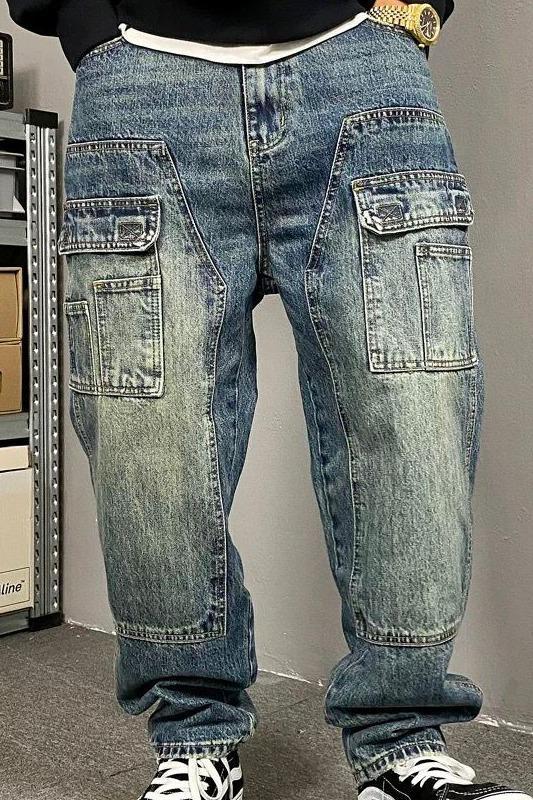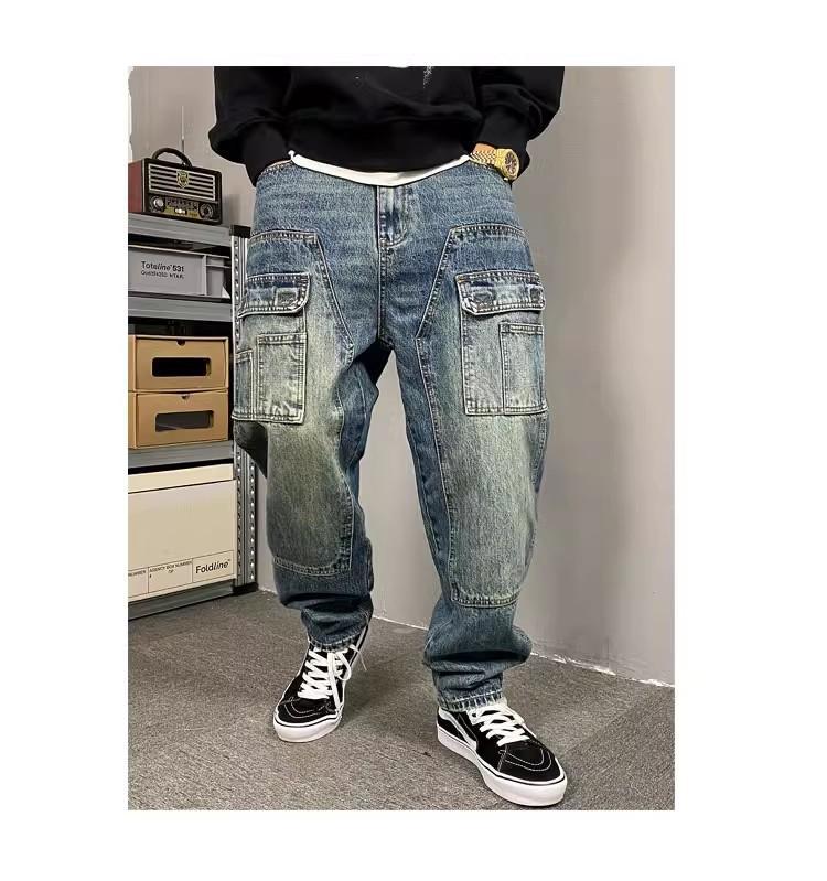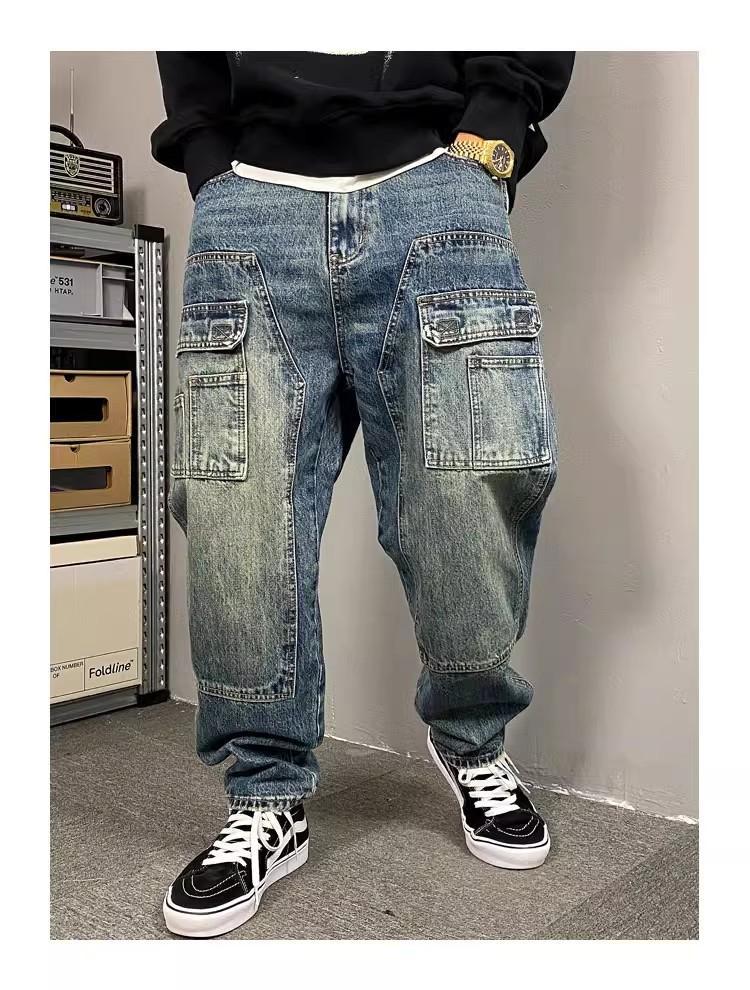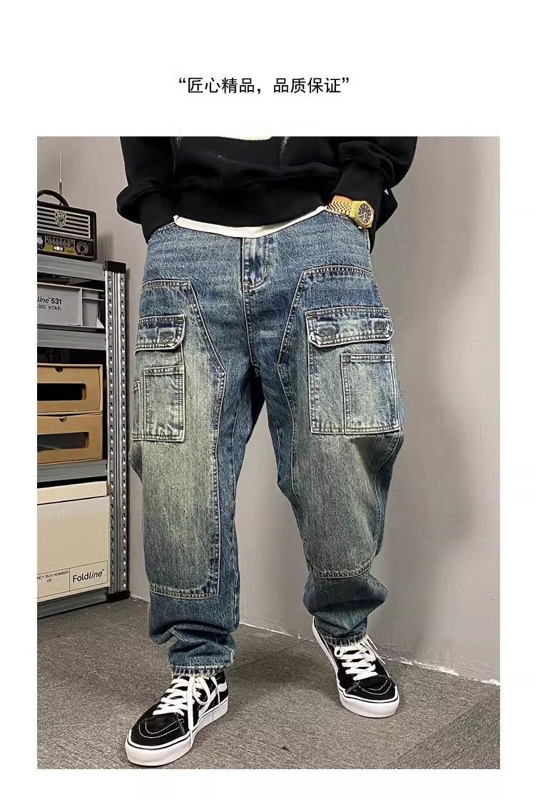 봄과 가을 미국 캐주얼 강아지 잘 생긴 빈티지 툴링 청바지 남성용 스트레이트 루즈 하이 스트리트 테이퍼 트렌디 팬츠스토어 가기