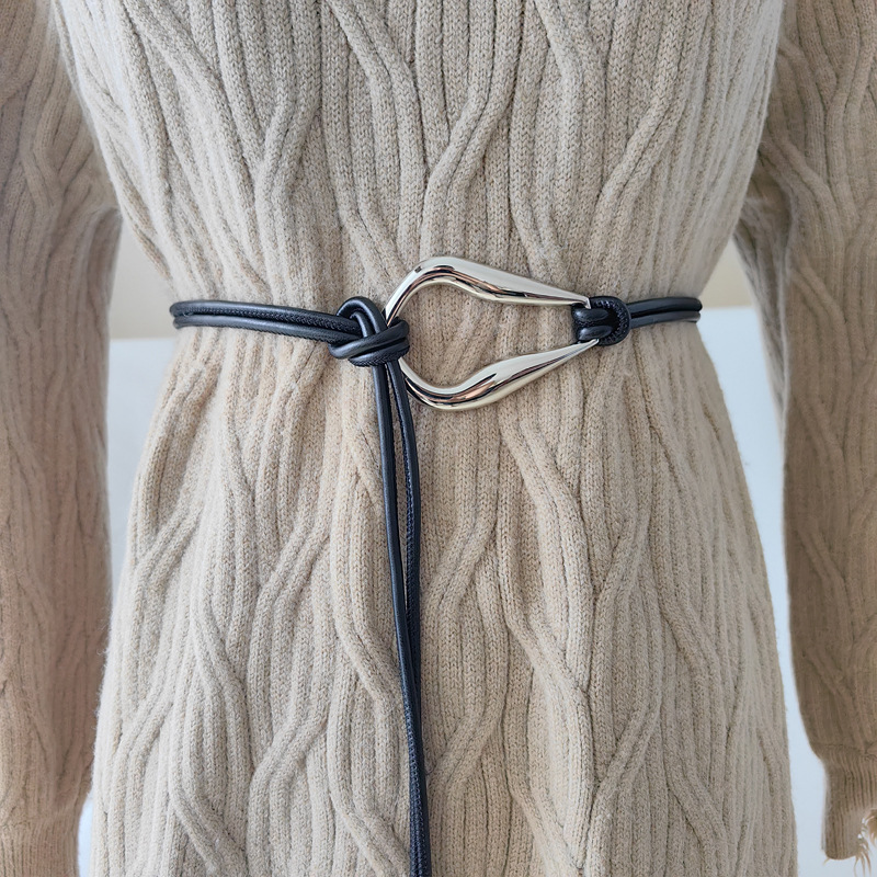 여성용 새 매듭 벨트, 스웨터 재킷이 있는 심플하고 다재다능한 스트랩 장식 드레스, 여성용 작은 벨트