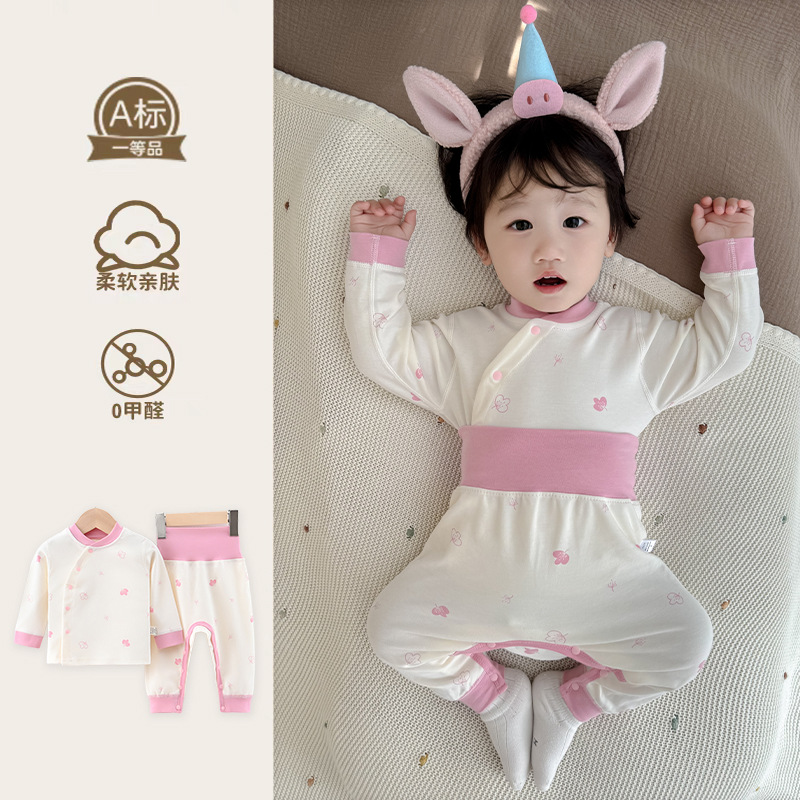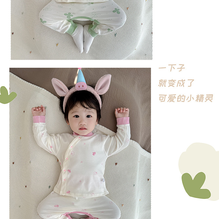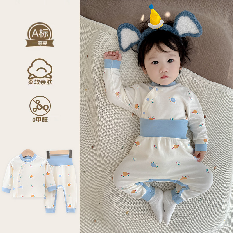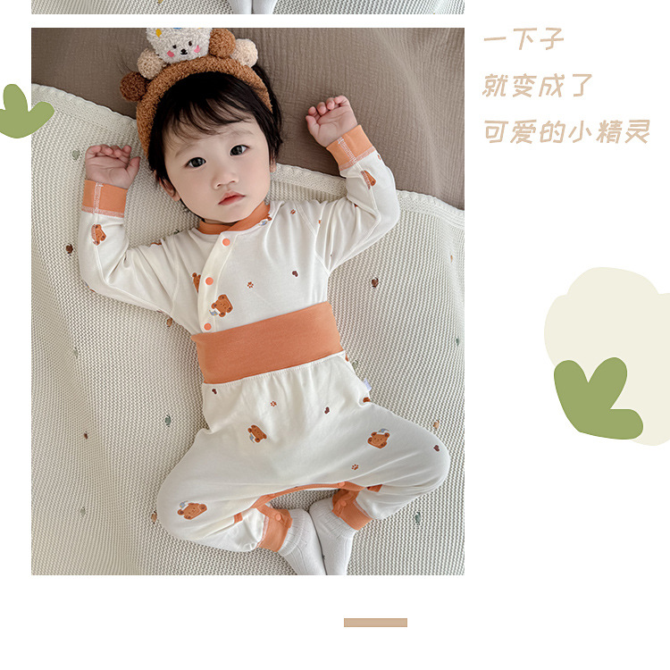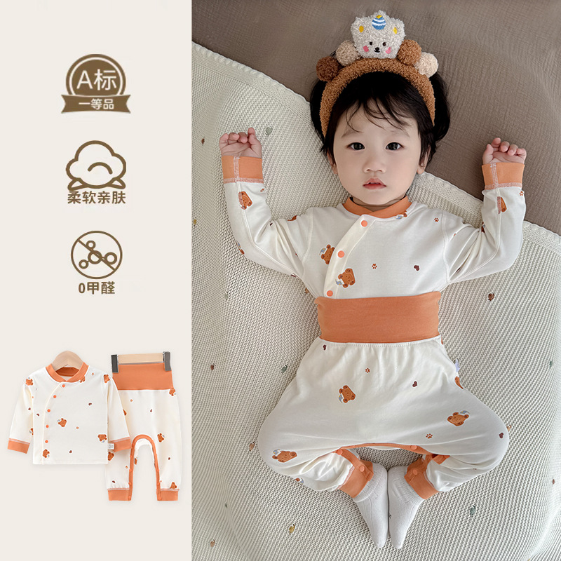 아기의 가을 옷과 바지 세트 코튼 오픈 크로트 아기의 느슨한 잠옷 봄과 가을 옷 아동베이스 속옷 분할스토어 가기