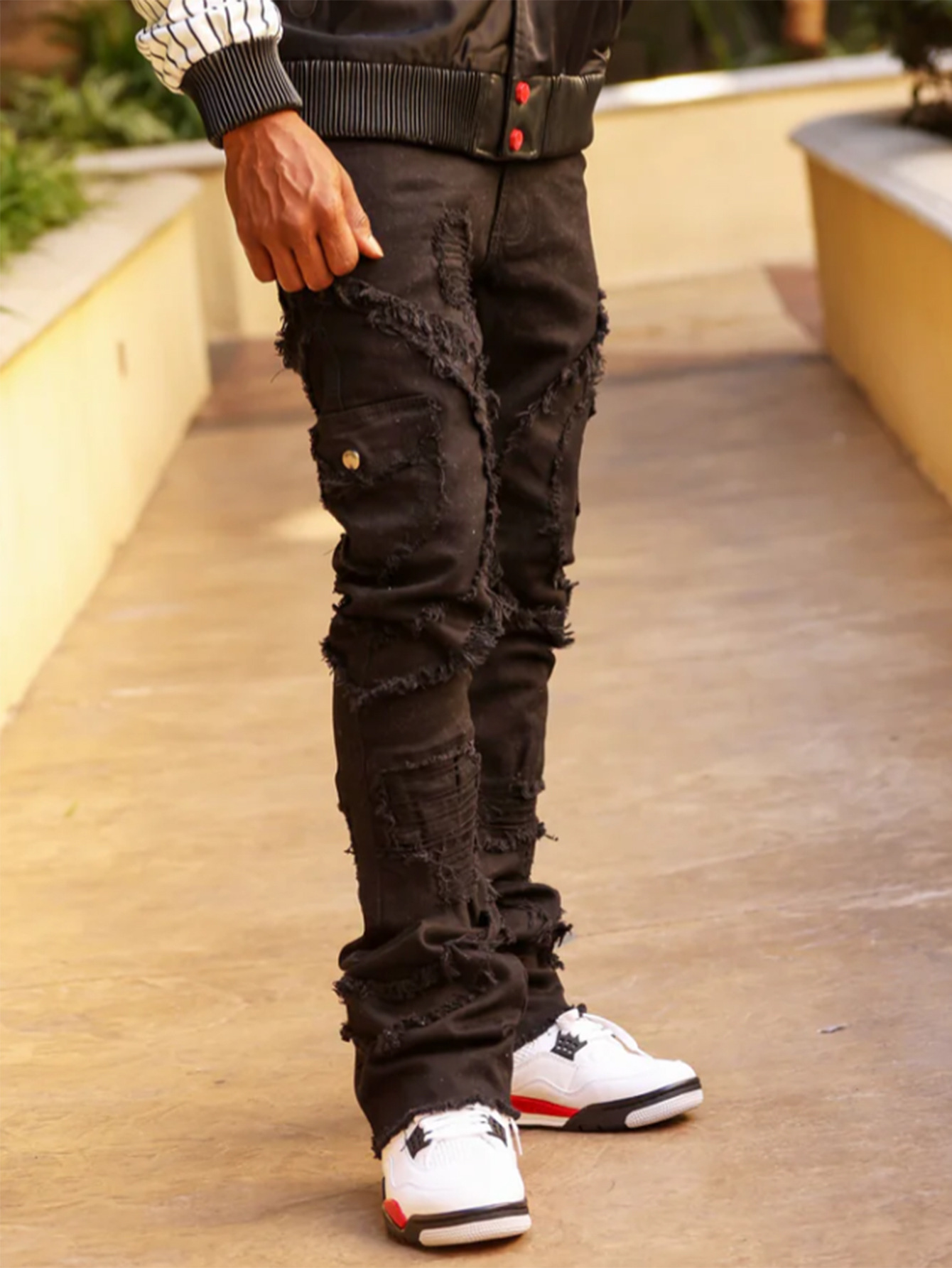 2024 유럽과 미국 국경 새로운 청바지 남성 스티칭 트렌드 타셀 스트레치 마이크로 라 스트레치 청바지스토어 가기