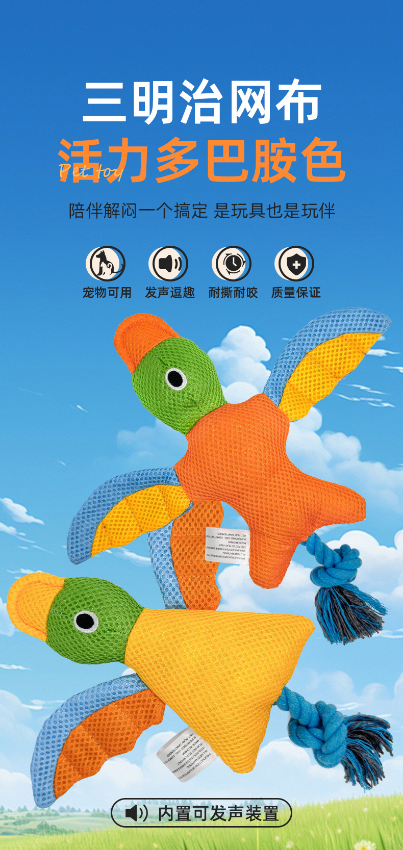 애완 동물 진정 봉제 보컬 매듭 장난감 개 고양이 야생 거위 강한 몸 물린 치아 청소 재미있는 장난감