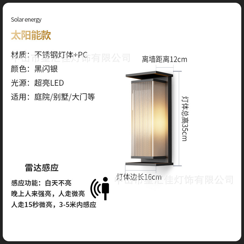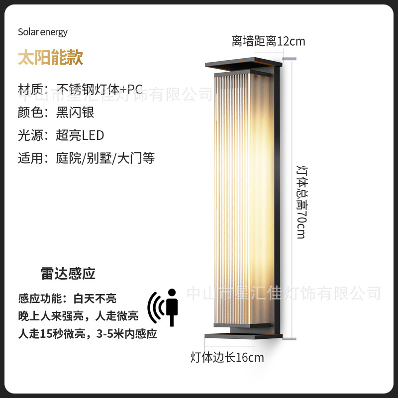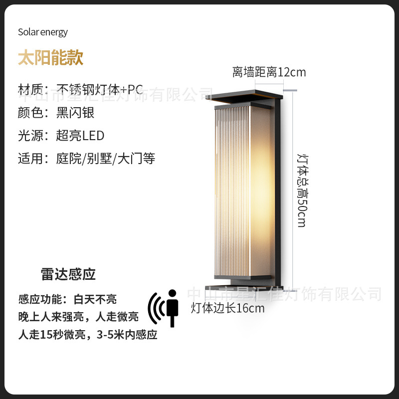 야외 벽 램프 방수 야외 테라스 태양 외부 벽 램프 게이트 기둥 현대 간단한 안뜰 스트립 빛