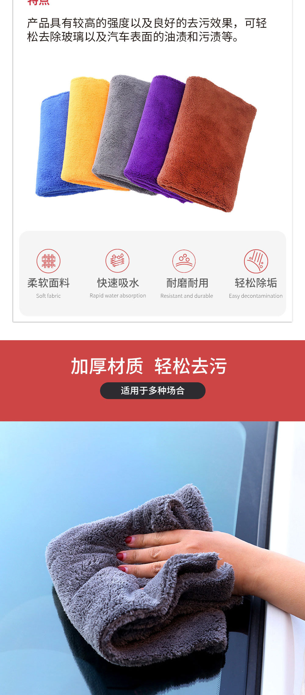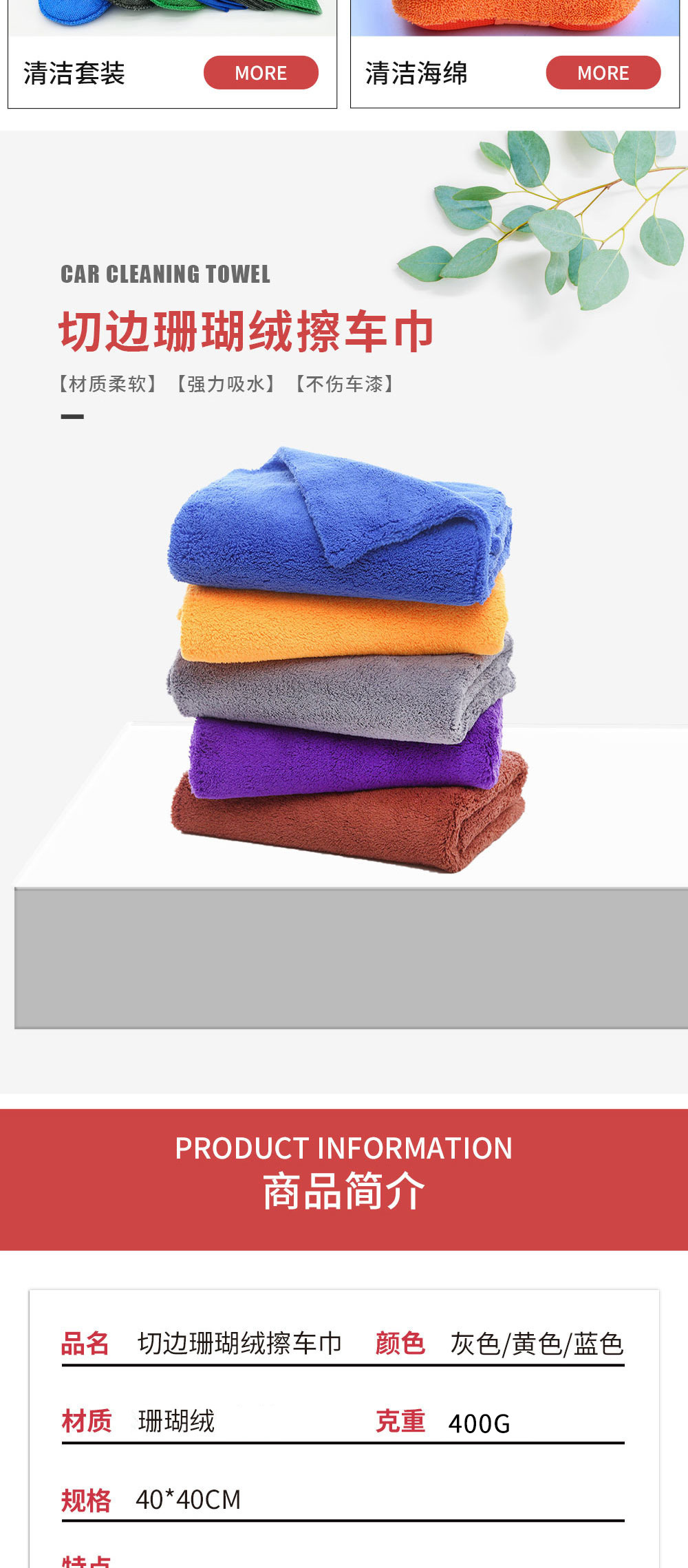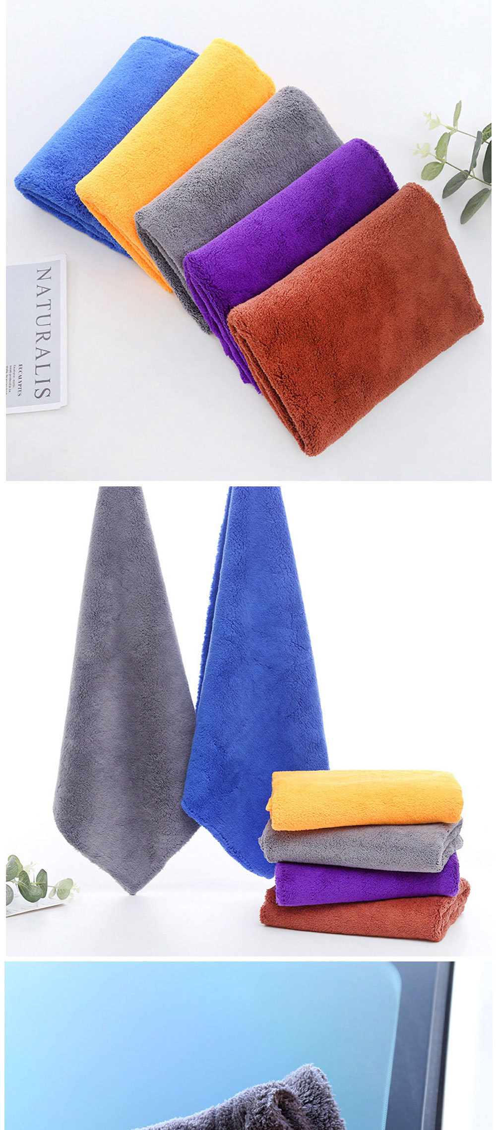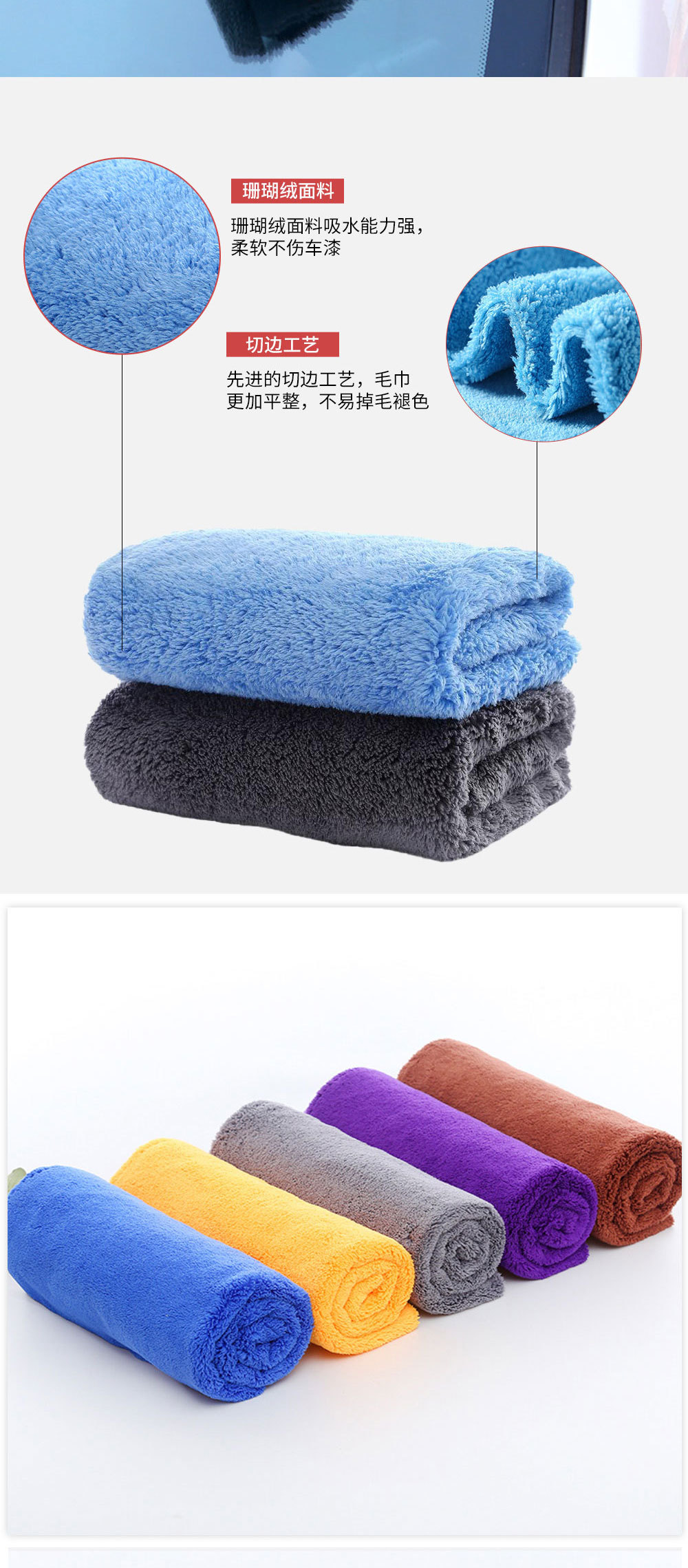 새로운 단색 트림 산호 양털 세차 타월 두꺼운 흡수성 긴 머리 자동차 수건 청소 천 40*40 트림