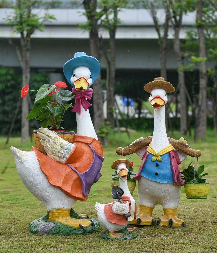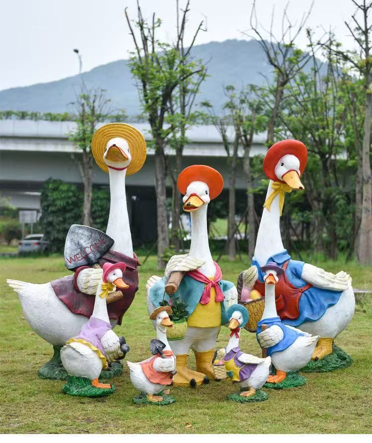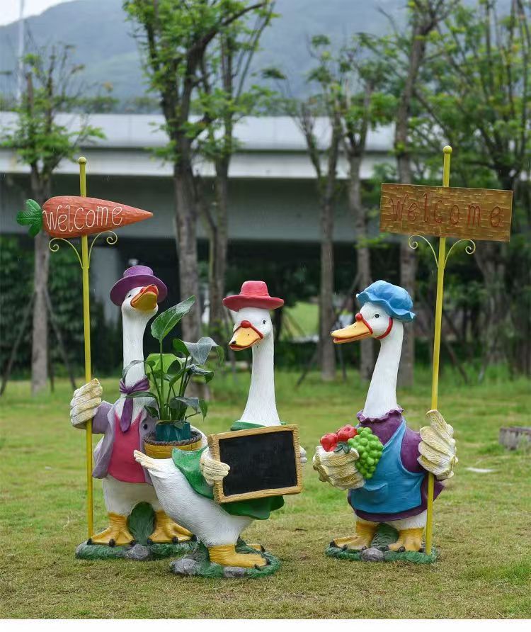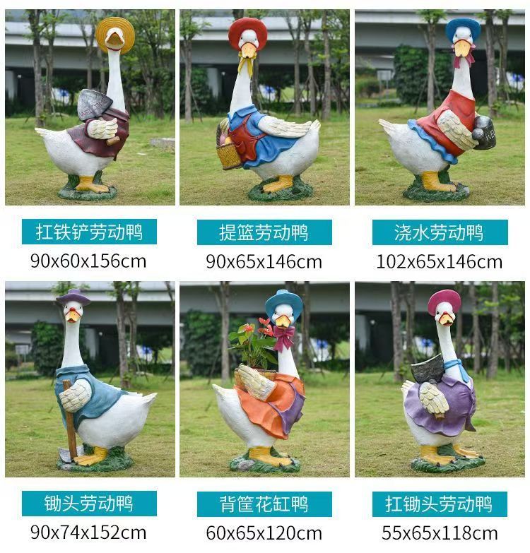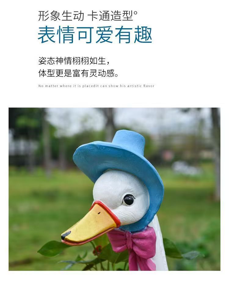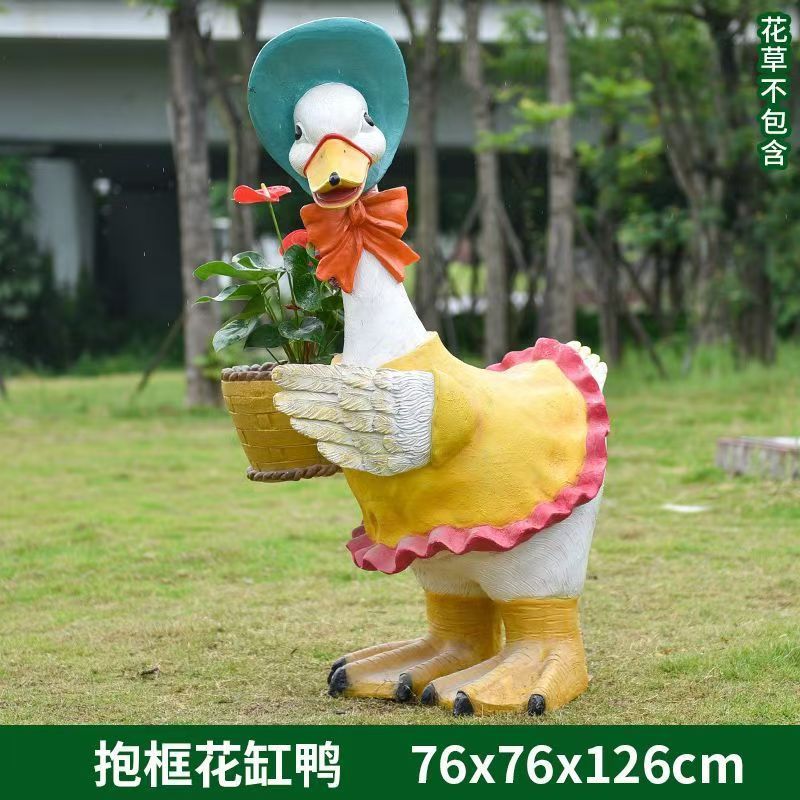 꽃 정원 만화 오리 조각 야외 동물 유리 강철 큰 장식품 유치원 빌라 공원 풍경 지역 장식스토어 가기