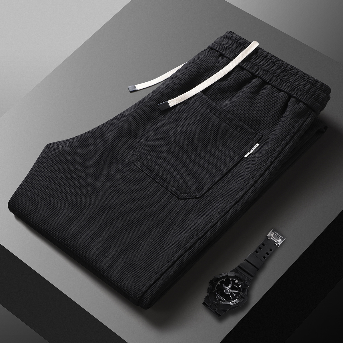 남성용 와플 패턴 스웨트팬츠, 봄/가을용 루즈핏 와이드 스트레이트 레그 기모 바지, 남성 스포츠 고급 캐주얼 팬츠 트렌디스토어 가기