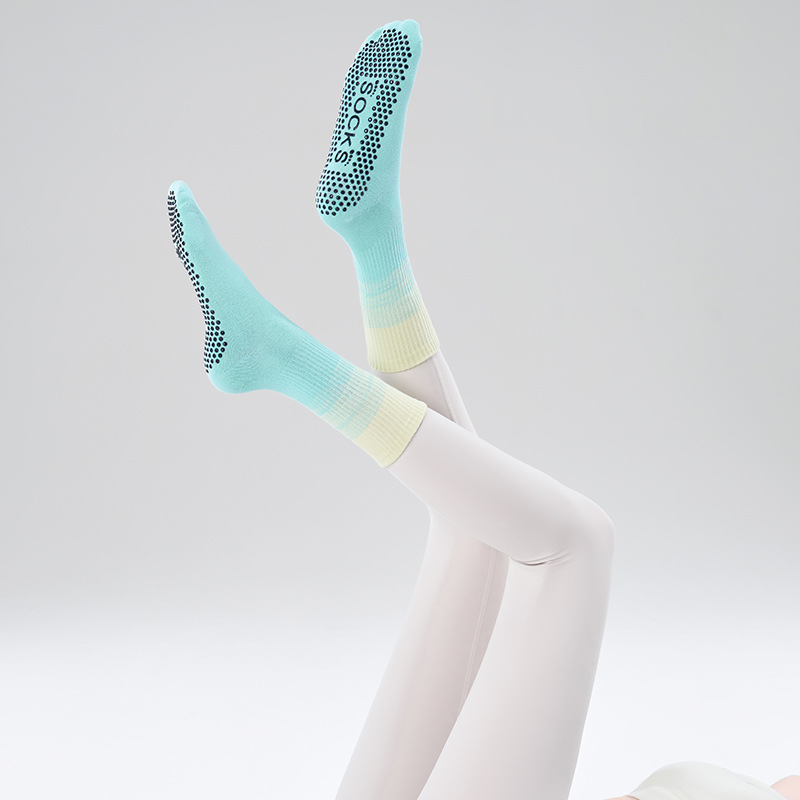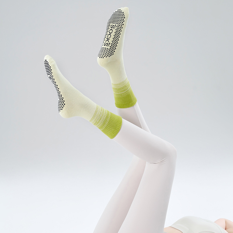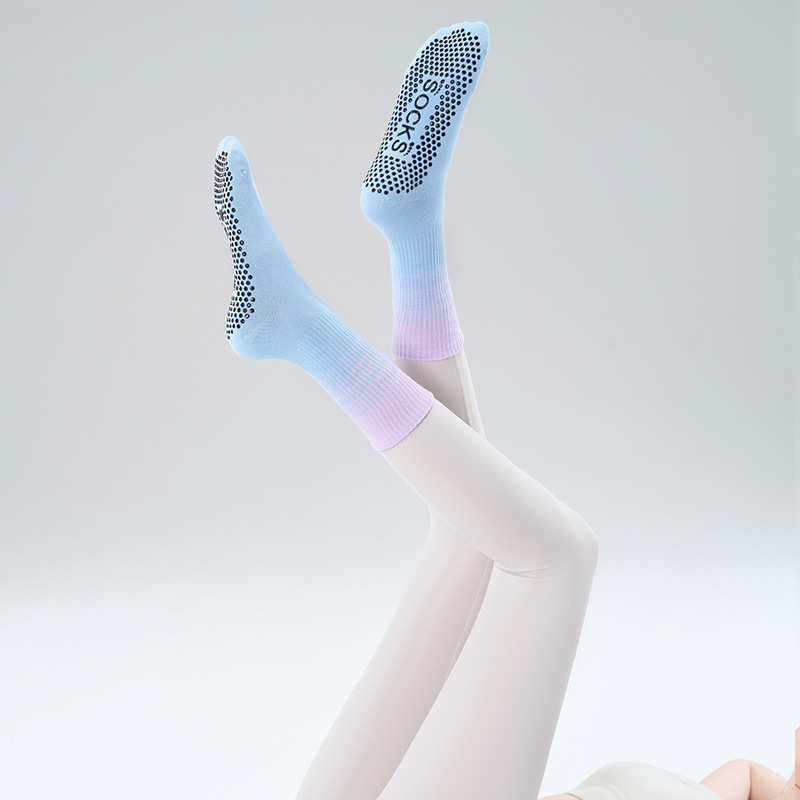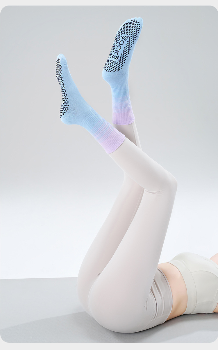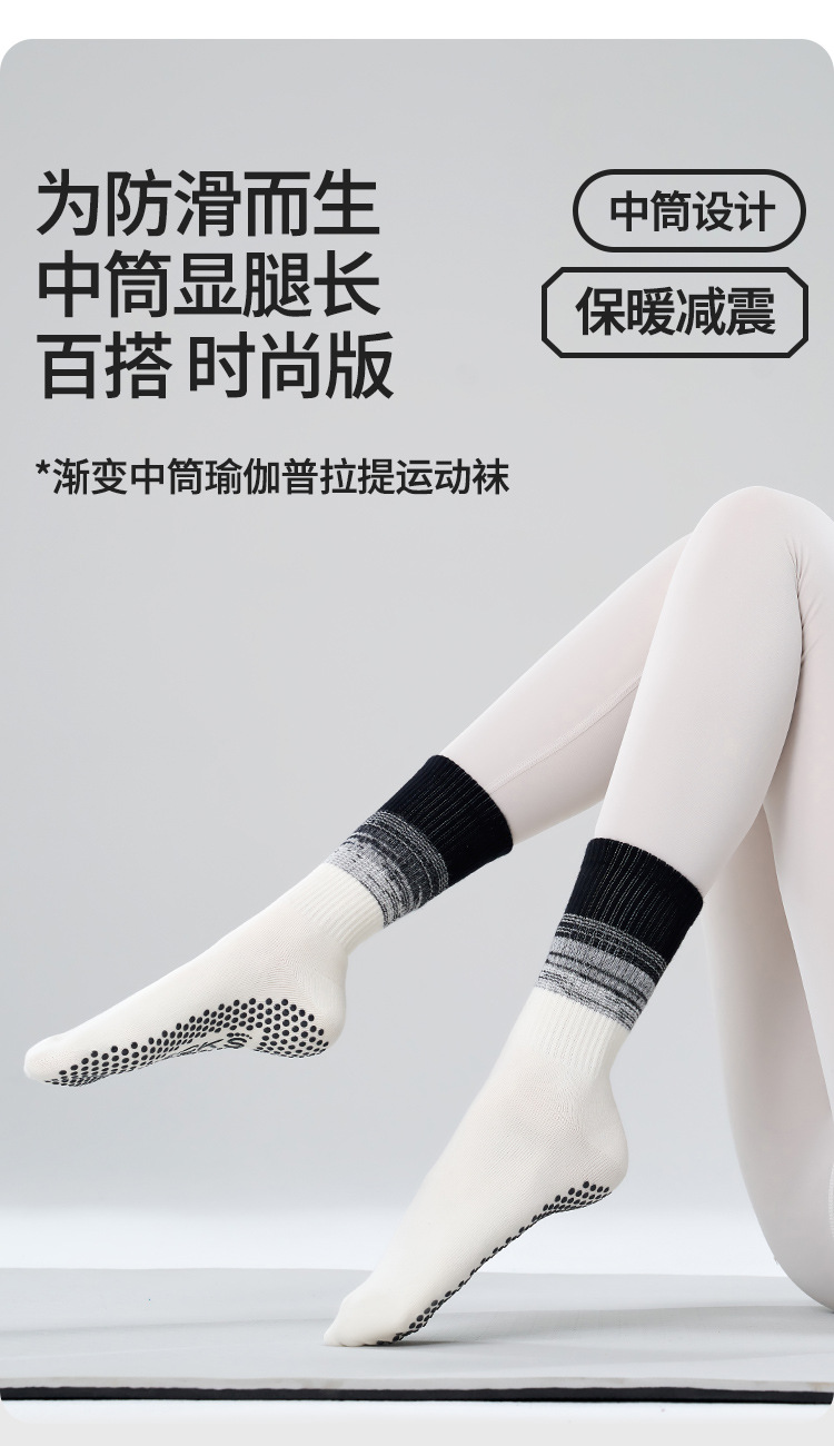 2025 그라데이션 미끄럼 방지 요가 양말 여성용 가을 스포츠 땀 흡수 중간 길이 양말 땀 흡수 및 탈취 피트니스 필라테스 양말스토어 가기