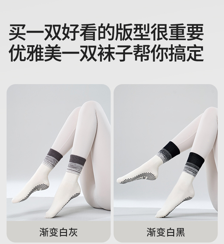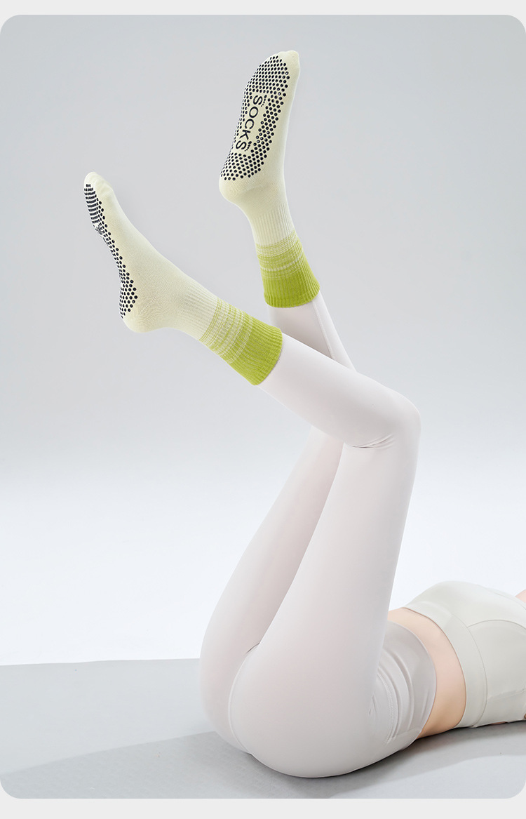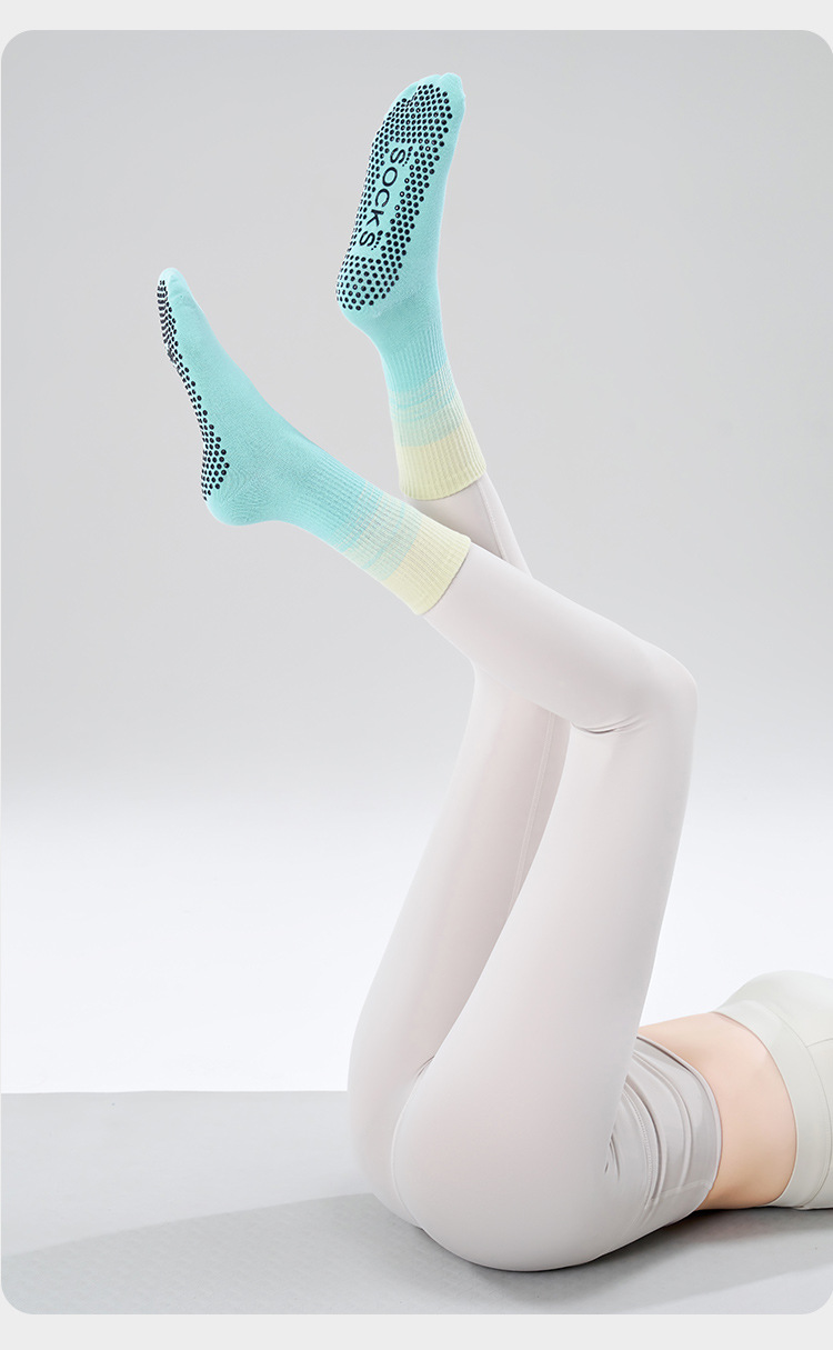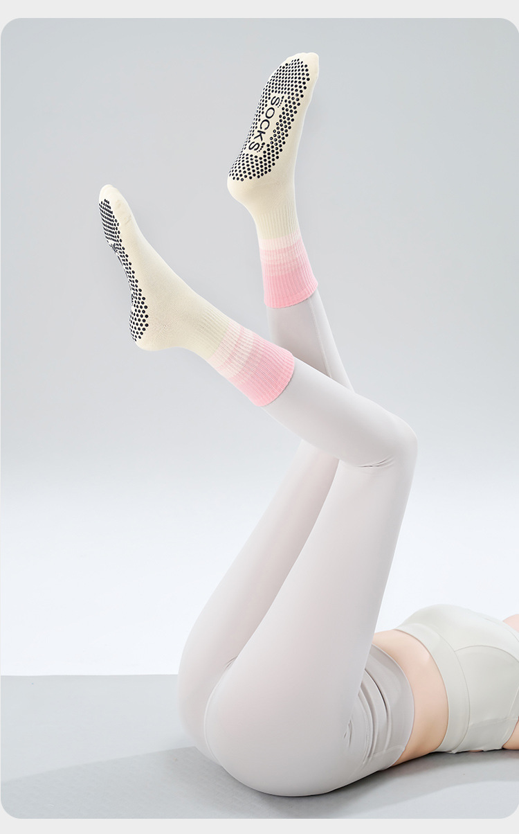 2025 그라데이션 미끄럼 방지 요가 양말 여성용 가을 스포츠 땀 흡수 중간 길이 양말 땀 흡수 및 탈취 피트니스 필라테스 양말스토어 가기